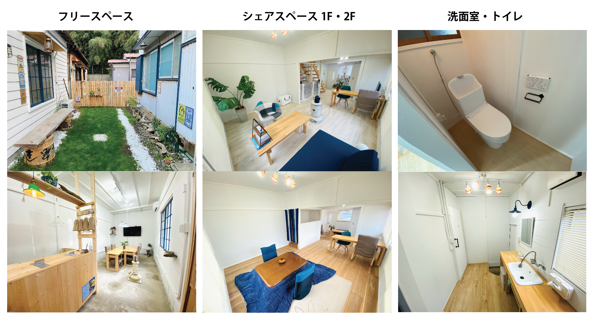 セルフリノベーションが完了した「フリースペース」と「シェアスペース」、「トイレ・洗面室」