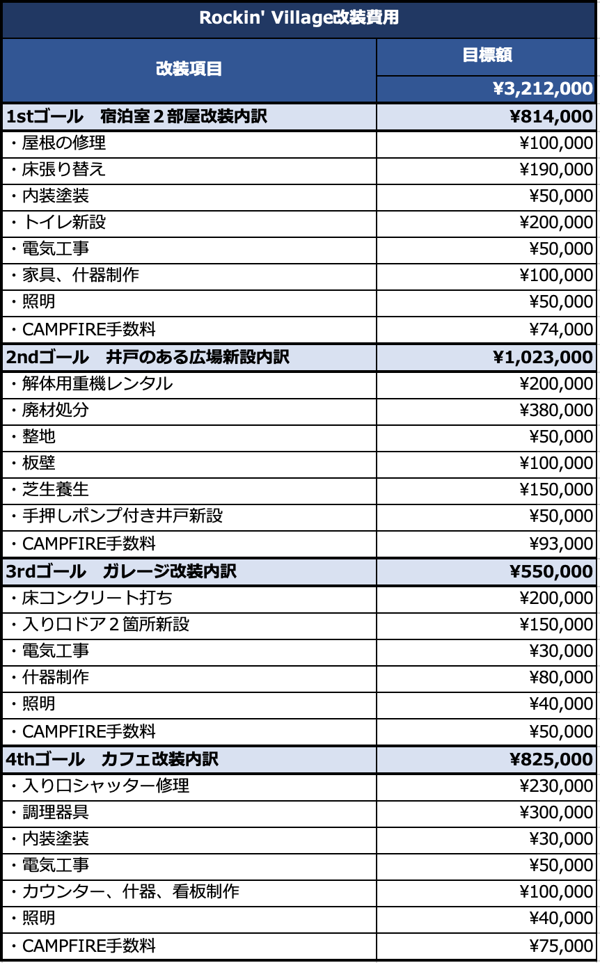 【1stゴール】簡易宿泊室:2部屋 / 目標金額:¥814,000