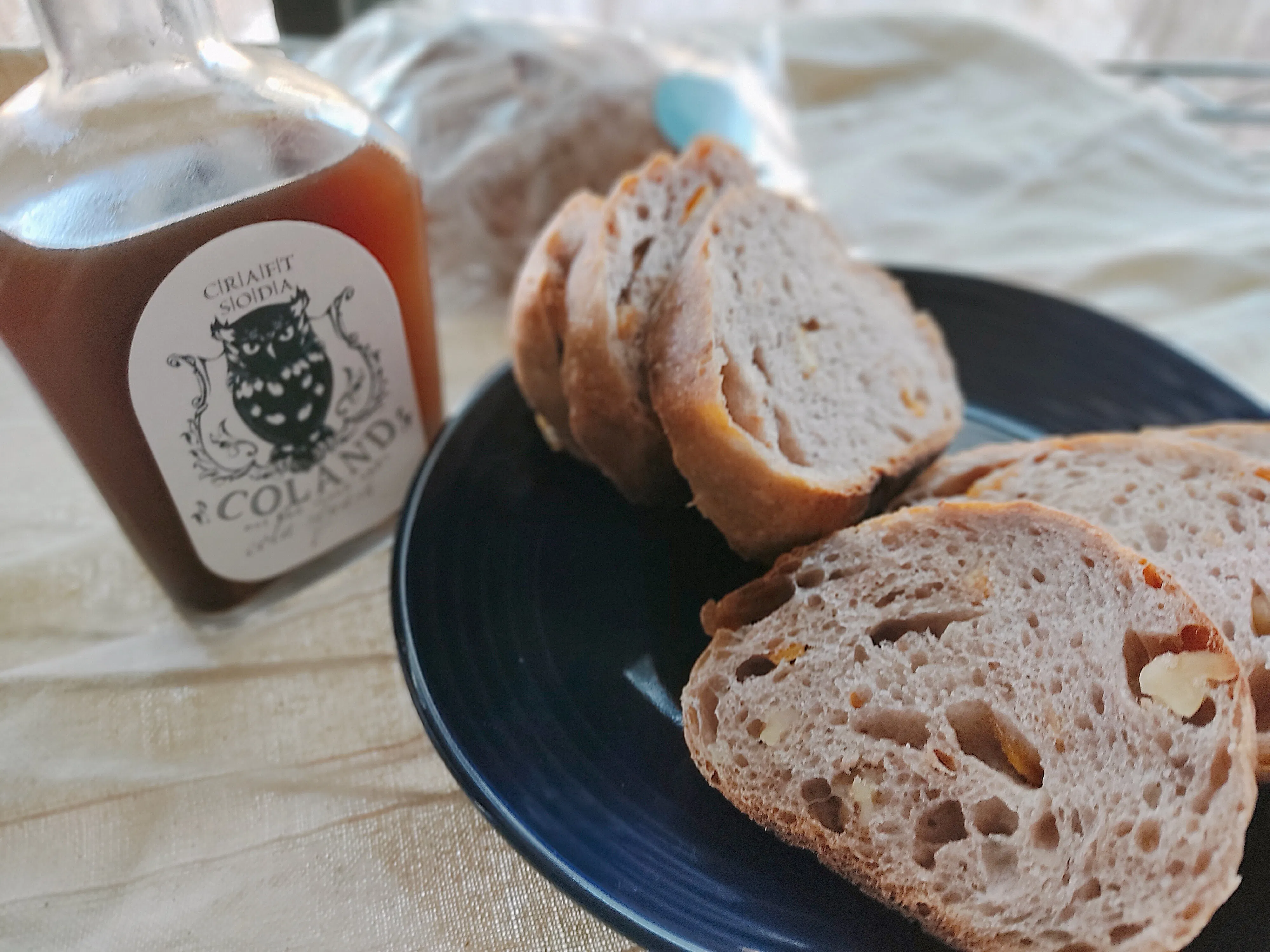クラフトコーラには柑橘とスパイスが様々入っていていい香り。パンにすると柑橘が少し控えめになってしまったので自家製マイヤーレモンピールを練り込み、くるみを少し加えていました♪