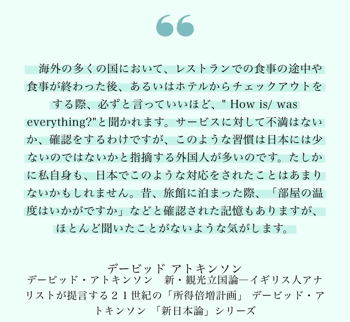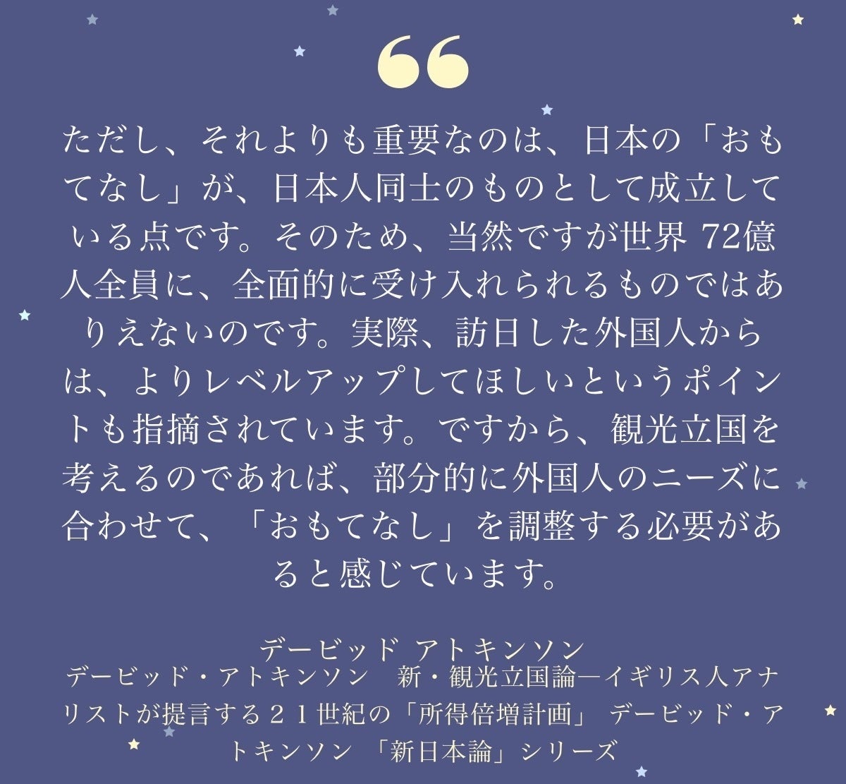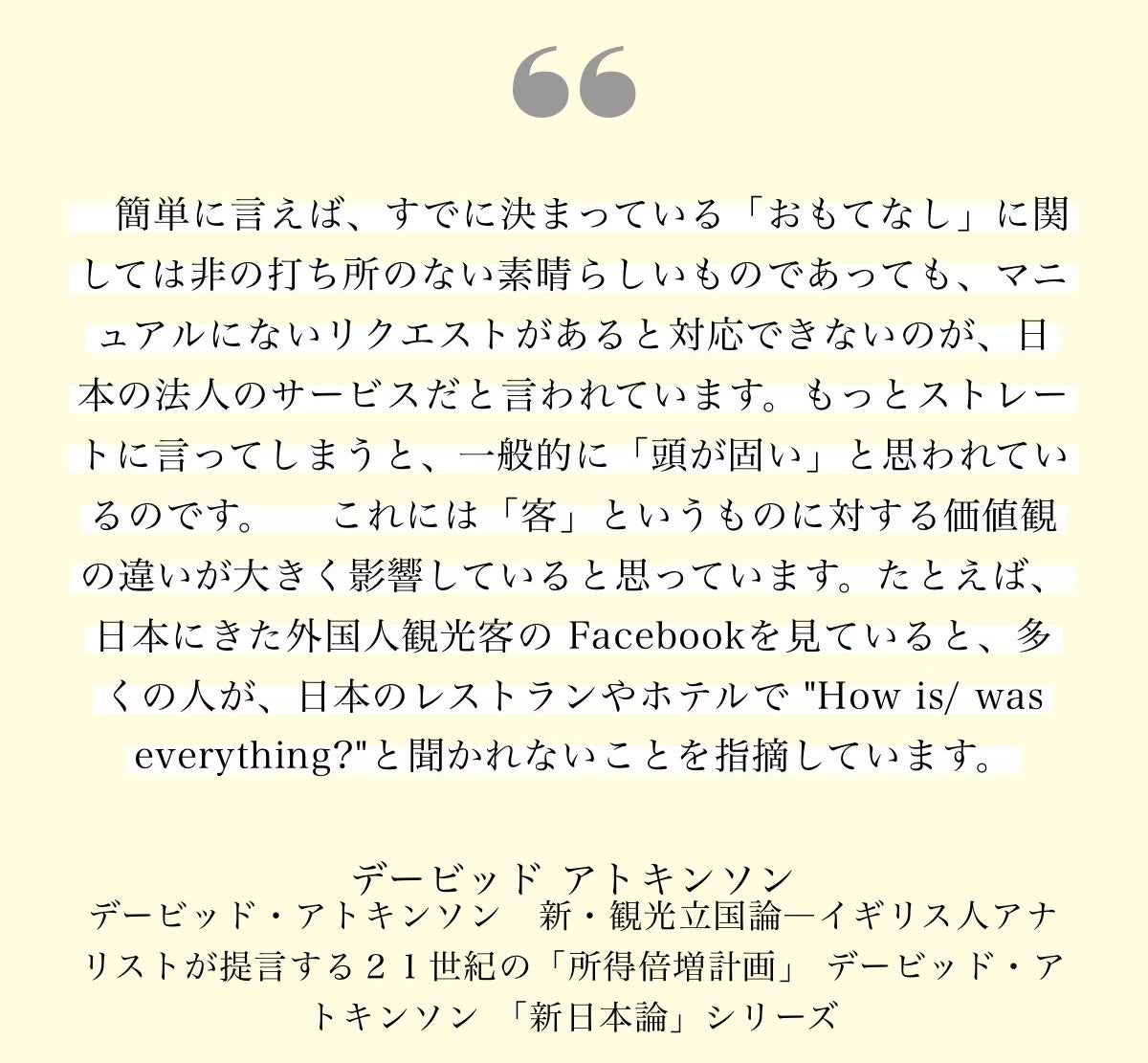 イギリスのアナリスト、デービッド・アトキンソン氏による著書「新・観光立国論」