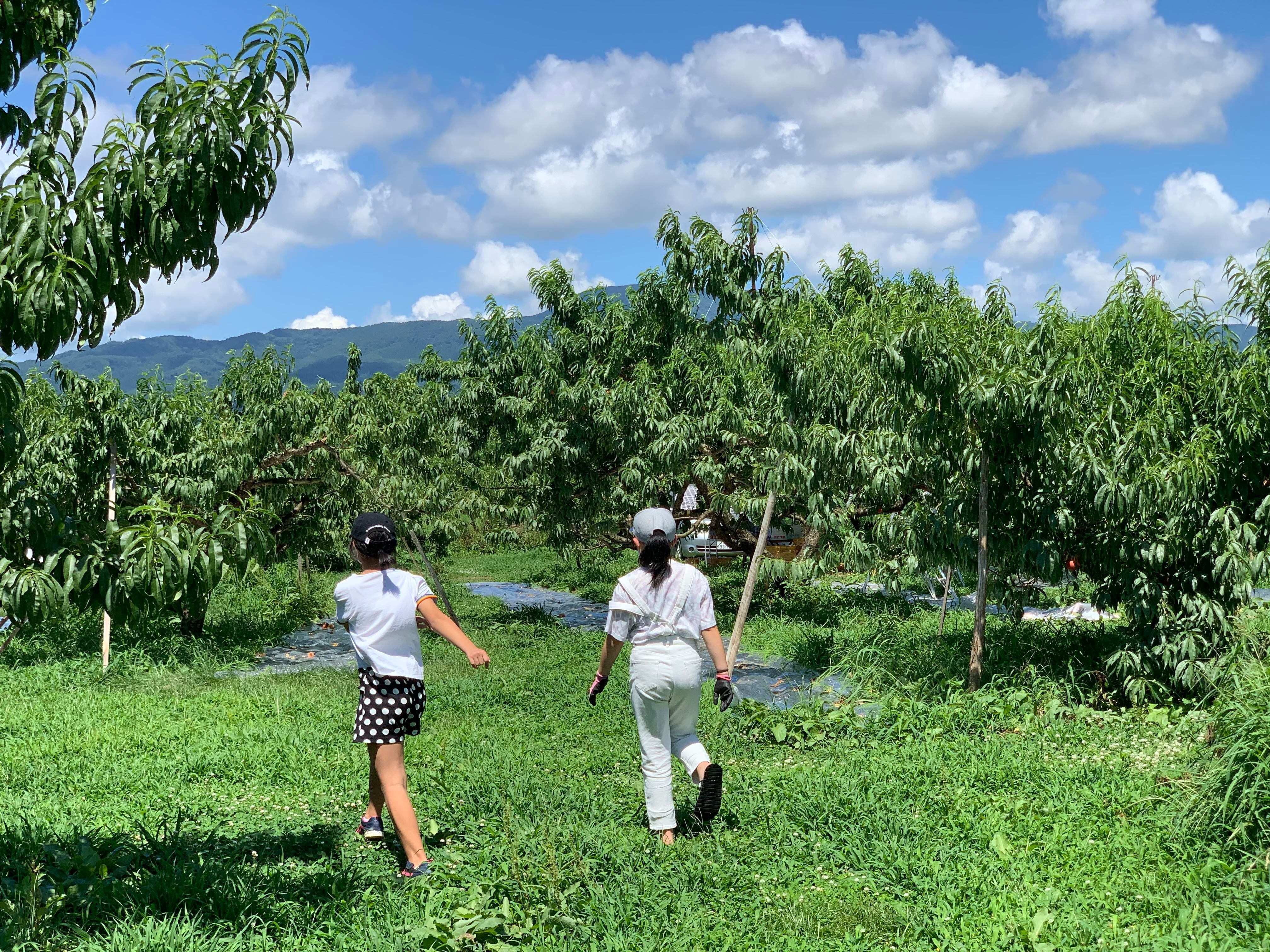 Berry’ s Garden Farmは、桃畑。木々が並んでいます。森林浴のいやしは、効果が期待できることが科学的に証明されており、海外でも推奨されています。