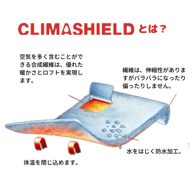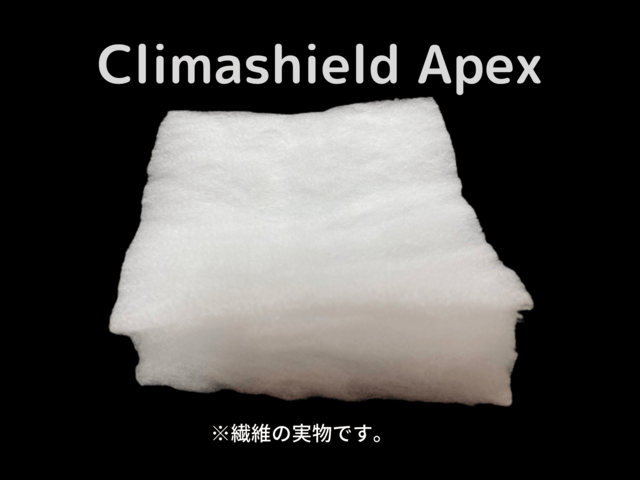 Climashield APEXは、軽量で熱効率の高い連続フィラメント断熱材で、汗などのこもった湿気も驚くほど乾きが早いです。
