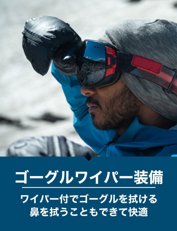 ゴーグルを拭くことができる素材になっています。