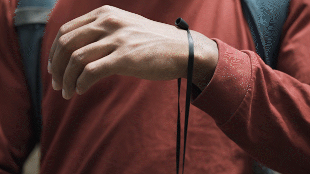 この紐で手首に固定することができます。