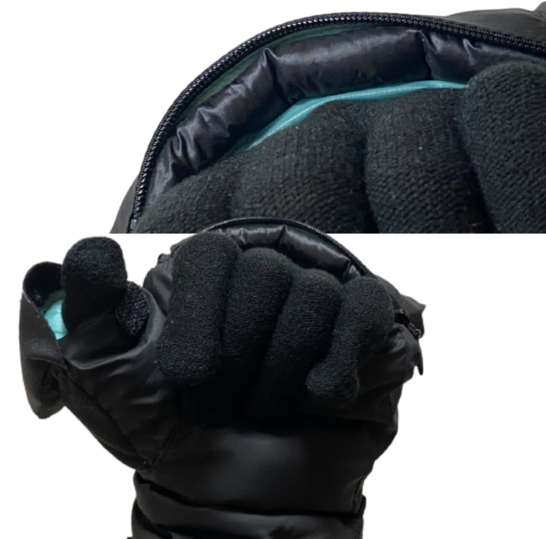 カイロなどを入れる手の甲側のポケットジッパー(お写真1枚目)と、手のひら側の、指を出す用ジッパー(お写真2枚目)がございますが、この度ジッパーは、内側に縫い込まれ、外側から見えない仕様になりました。