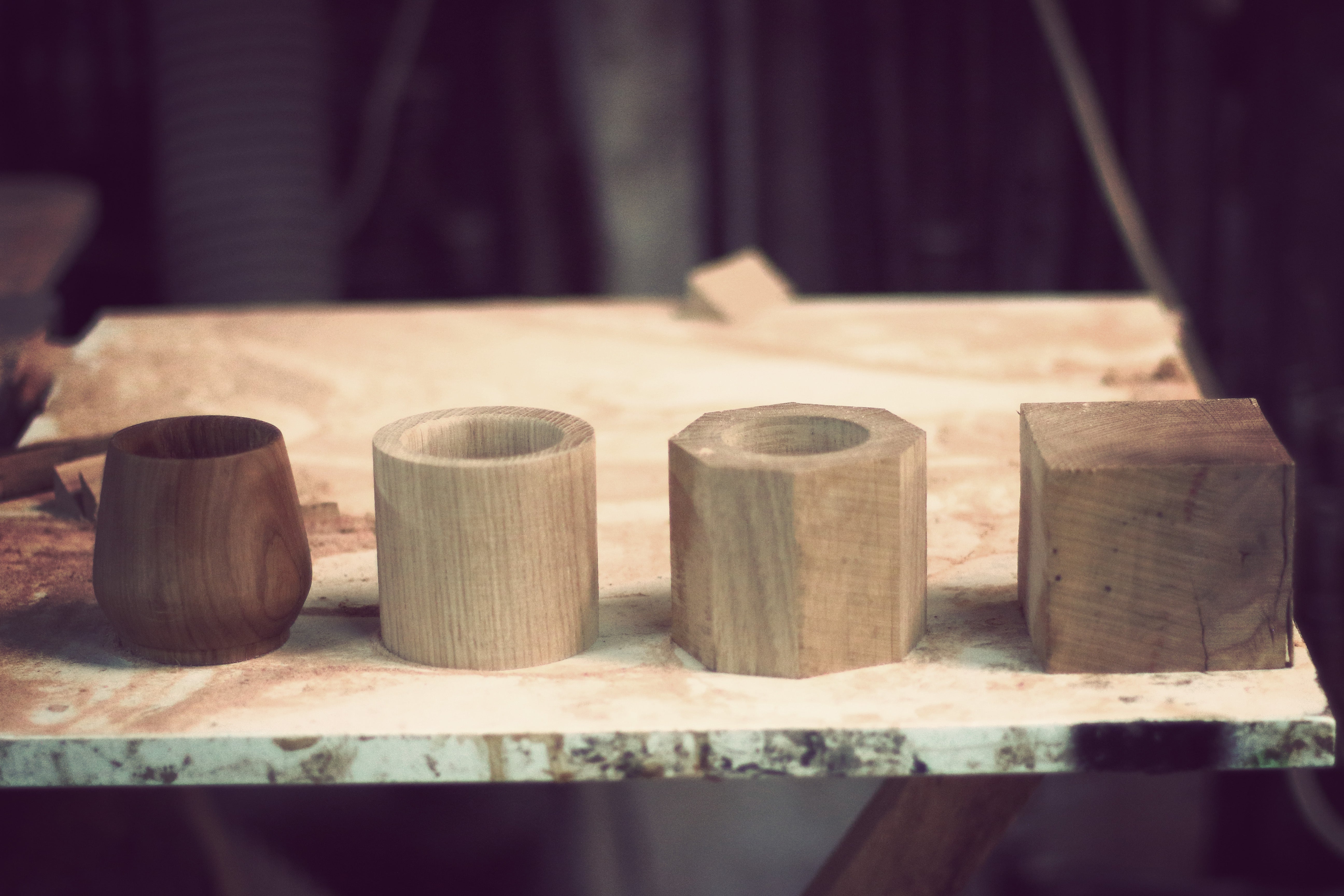 一方でワイングラスのように、底部に膨らみを持たせた形状を木材で製作することはとても難しく、手作業による専門的な製粉技術が欠かせません。