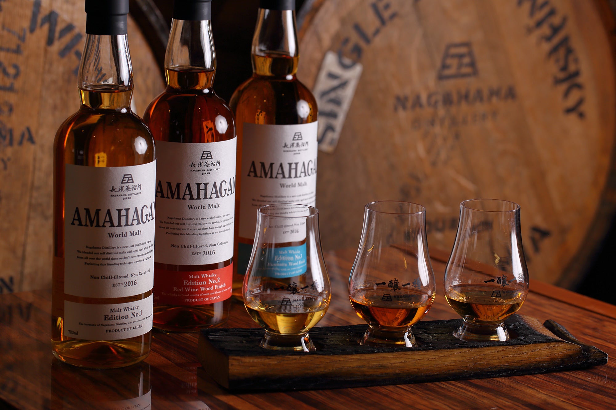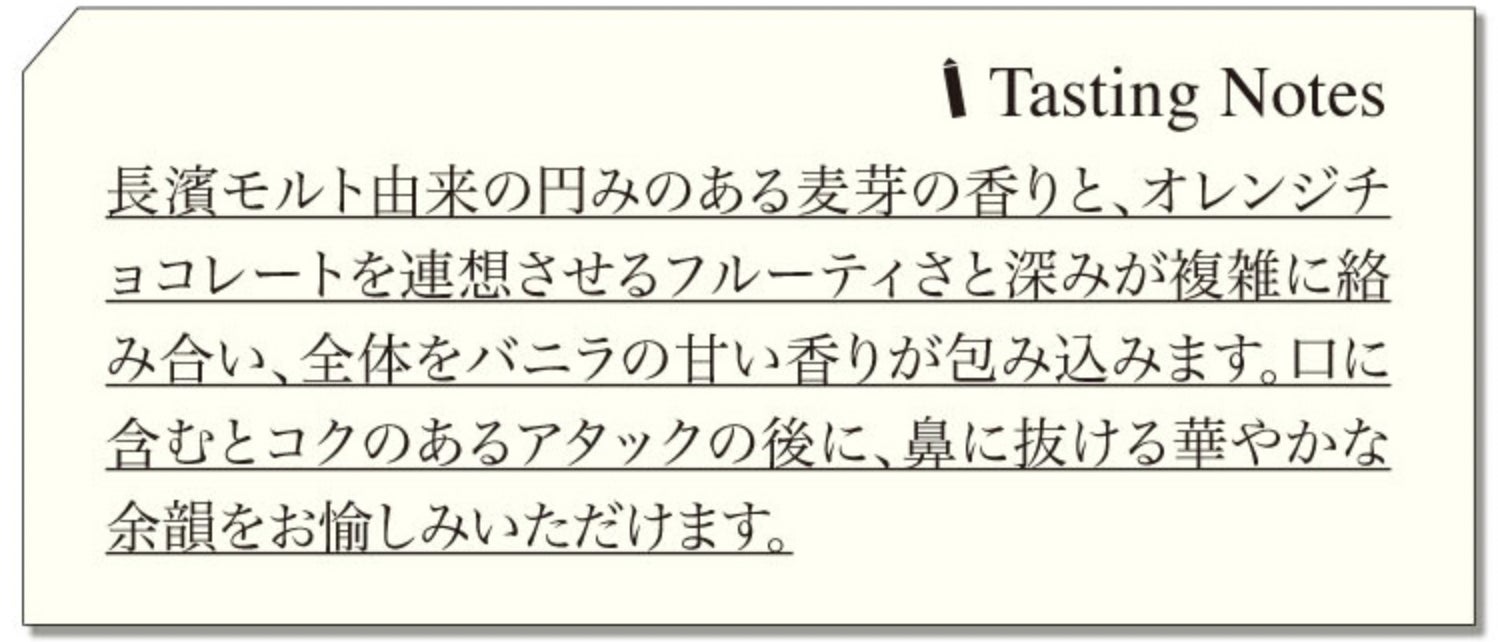 今回のコラボレーションにあたり、長濱蒸溜所マスターブレンダーの清井様をはじめ、スタッフの皆様よりオーク材の香りが高いタンブラーとの相性を考慮し、下記2つのエディションをご提供いただきました。