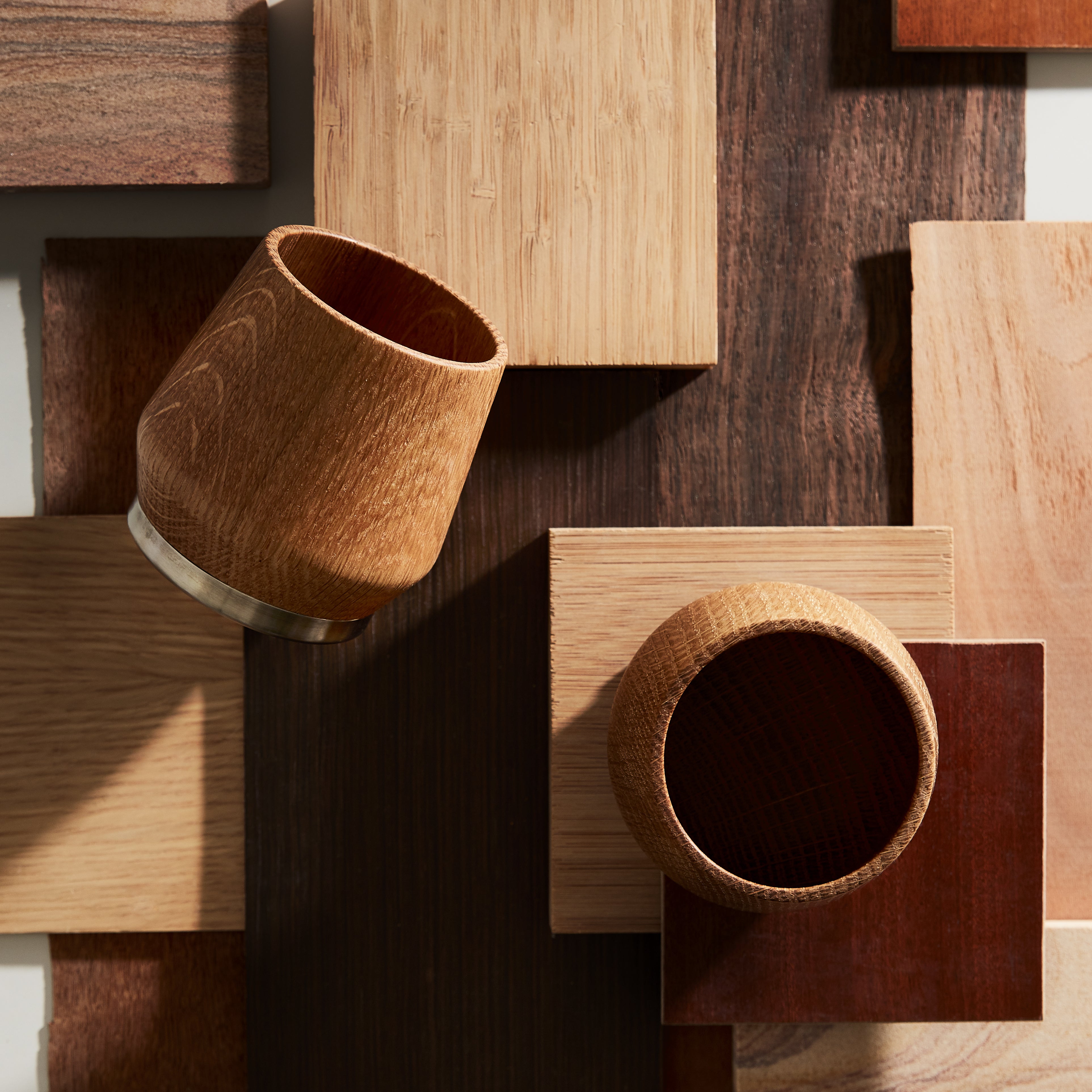 ひとつひとつのタンブラーは、職人が質が高く寿命の長いオークを厳選し、その中の堅い部分のみを使用して作られています。高品質なタンブラーを製造するためには高品質な木々を慎重に選定することが最も重要です。