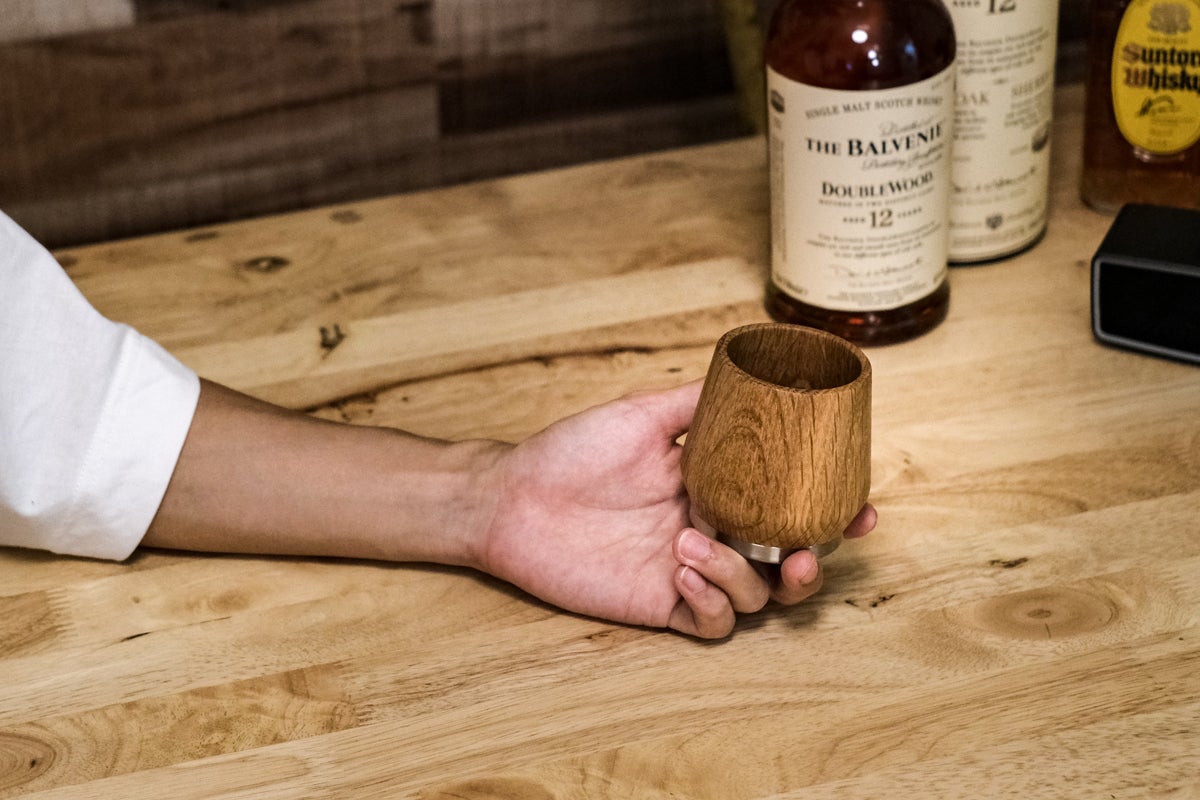 本製品は大量生産を諦め、あえてひとつひとつ手作りし、そして万全の管理体制を設けたことで、これまで木製タンブラーでは難しいと言われてきたワイングラス状の加工を実現しました。