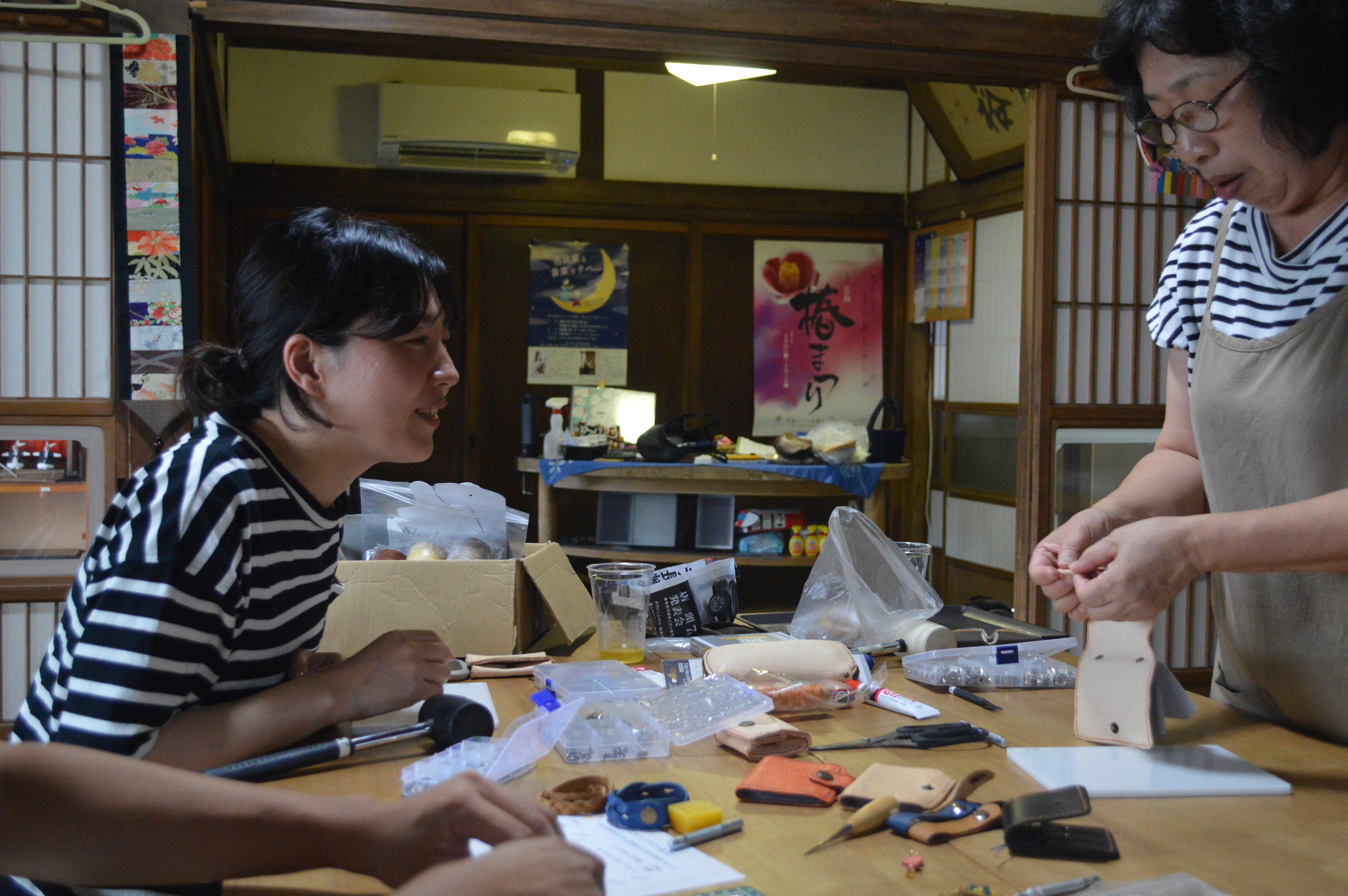 地域のおばちゃんたちと、捕獲した鹿の革を使って、いろいろな製品を作って販売しています。特にその中で、「鹿革ファーストシューズ」は九州北部を中心に新聞でも取り上げられて、口コミでも広がり、販売数を上げています。また、革を使ったレザークラフト教室なども、修学旅行生や地域住民に向けて実施しています。