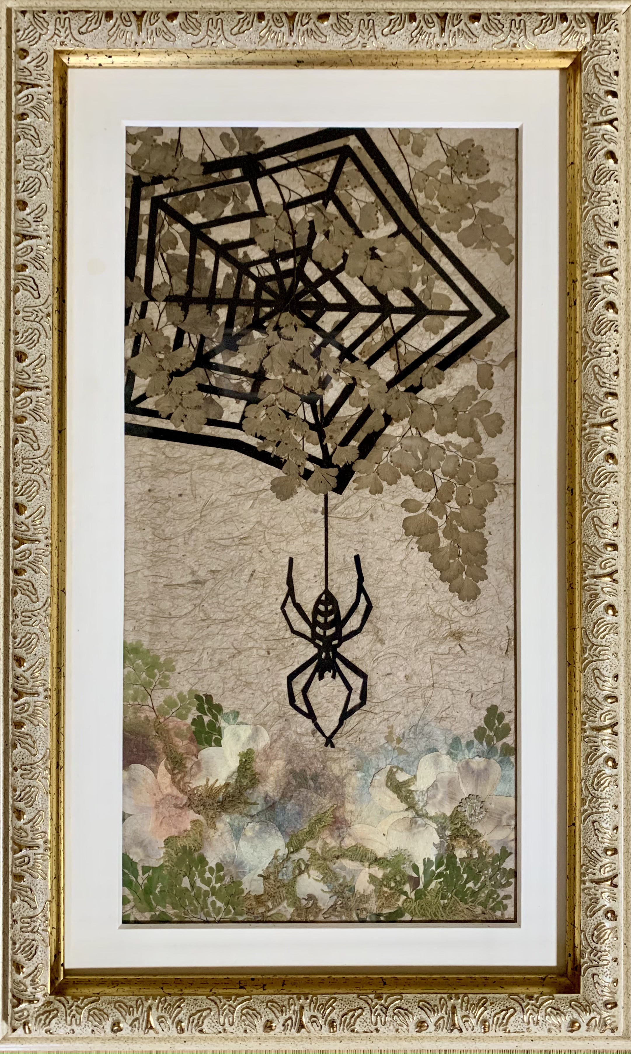 かをり押し花作品 「花と蜘蛛」縦42cm×横26cm 1名限定