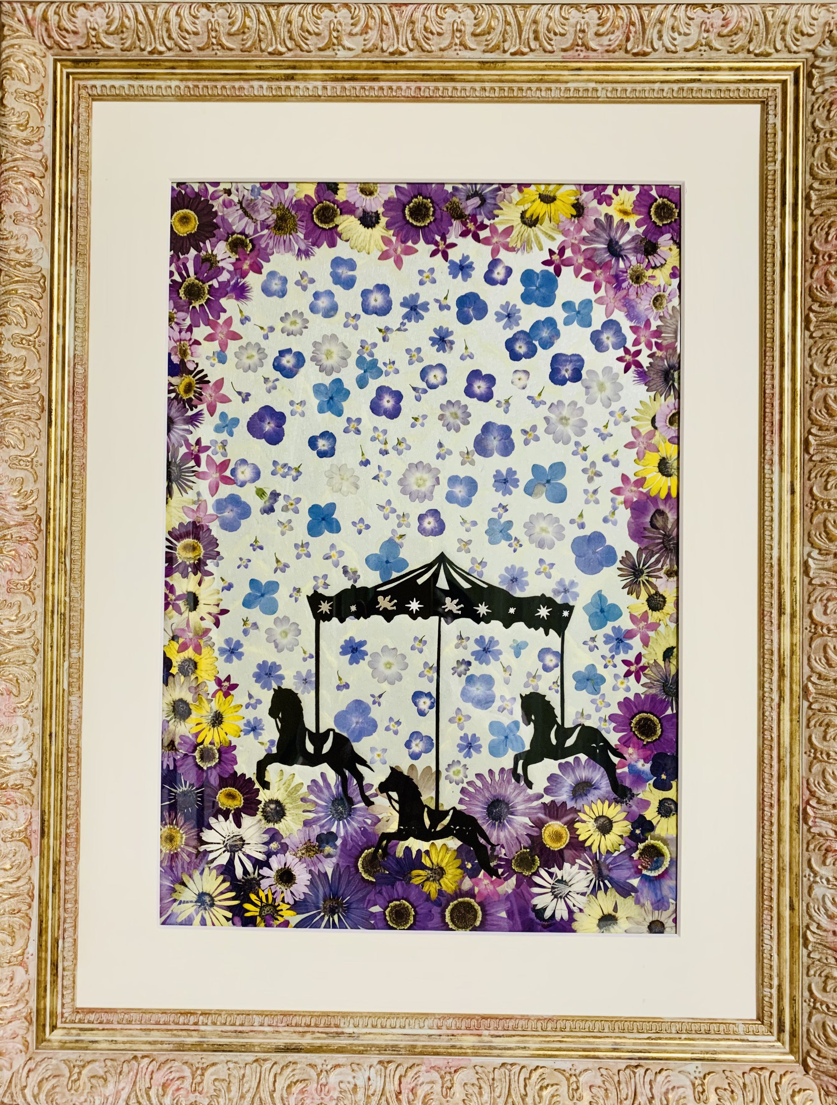 かをり押し花作品 「メリーゴーランド」縦69cm×横54cm 1名限定