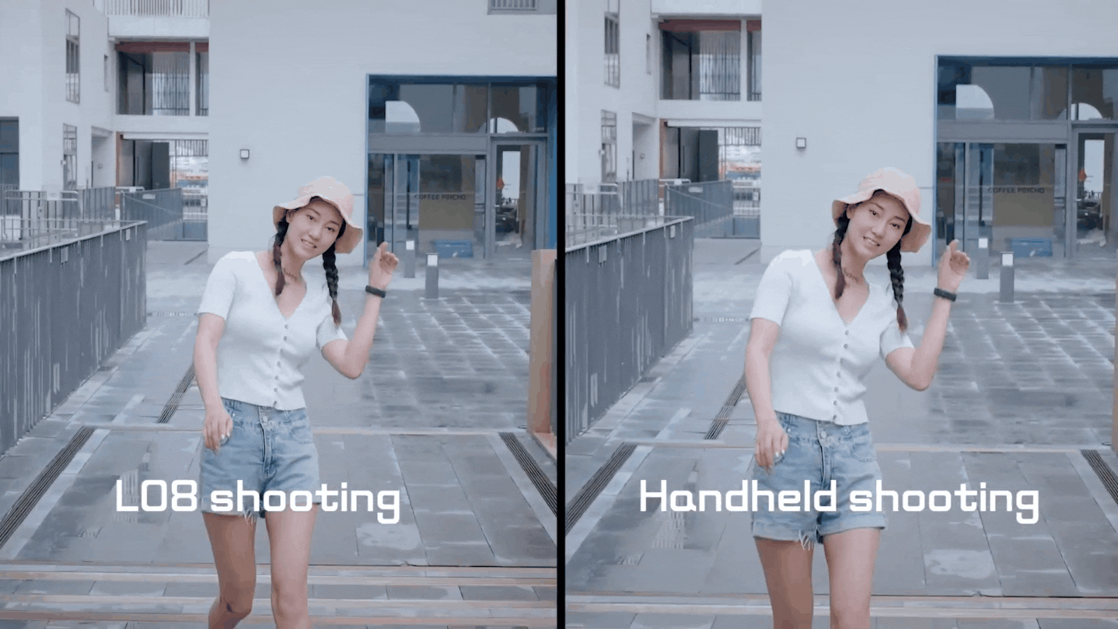 L08の最大の特徴は、自撮り棒でありながら、ジンバル機能が搭載されていることです。ジンバルと言えば、1つの軸を中心に物体を回転させる回転台のことで、デジタルカメラやスマートフォン、ドローンで動画を撮影するときに手ぶれを補正する機材のことで、例えば歩きながら、走りながらでも、ジンバル機能がスマホを水平に保て、手振れを最小限に抑えます。
