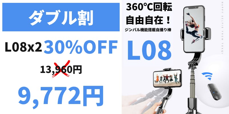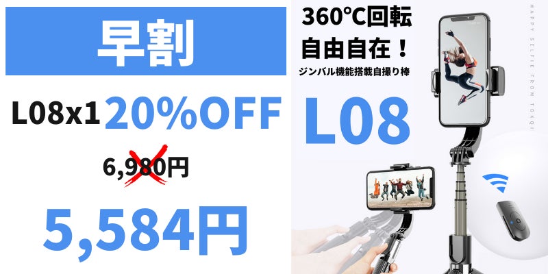 自撮り棒「L08」は、ジンバル機能を搭載しているため、
