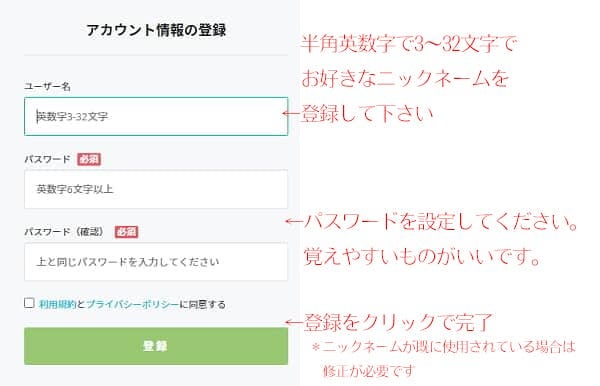 ① まずはユーザー登録を行います。