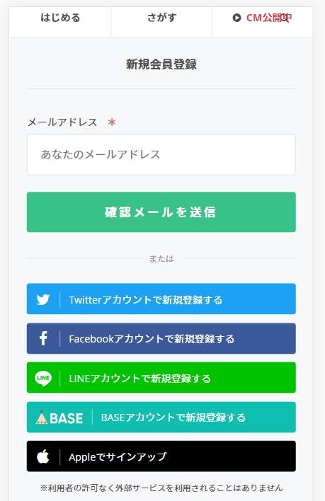 ~SNSアカウントで登録する場合~