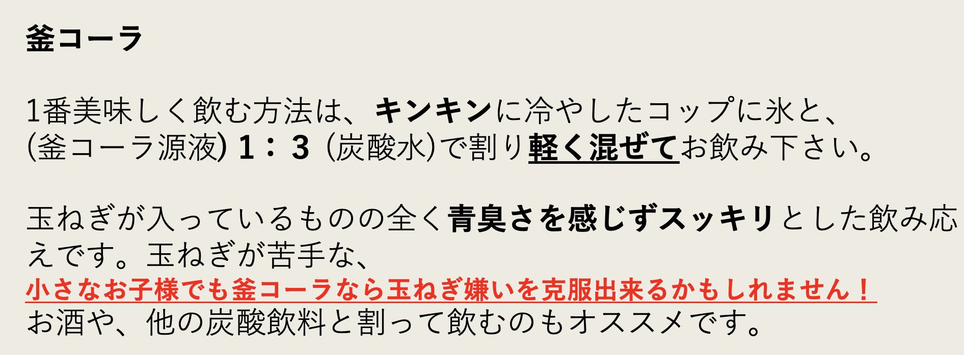 そして玉ねぎが苦手なキッズでも、コーラなら美味しいと言ってくれるかもしれない。