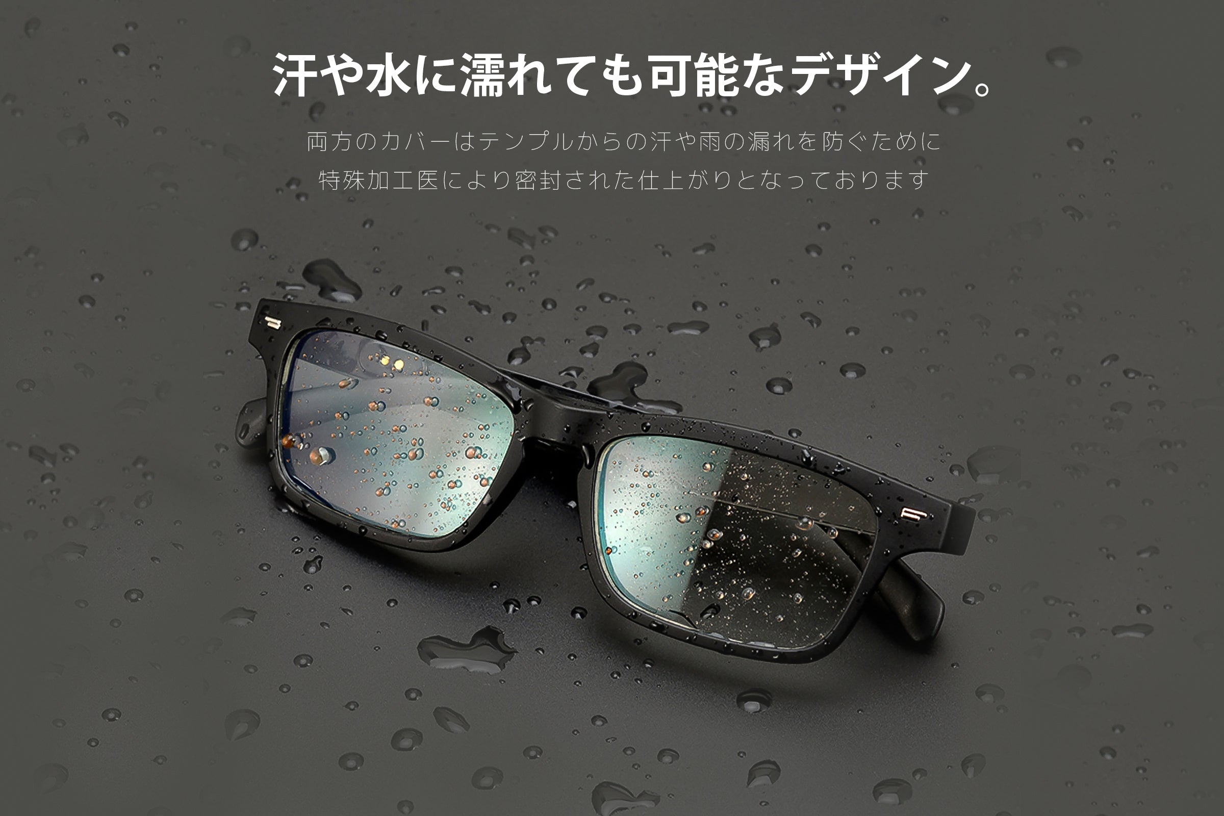 5.防水サングラス:当社のサングラスは、ワイヤレス設計されており、スポーツや音楽、通話に最適な製品です。また汗や雨に耐えることができる優れた防水効果を発揮します。