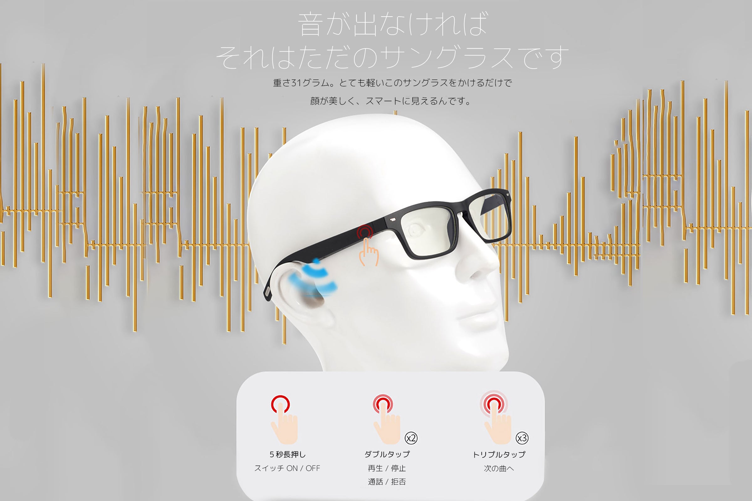 とても軽いサングラスは、重さ31グラムととても軽く、顔が美しく見えるのはもちろんですが、目と耳の活動を融合する事で、あなたのライフスタイルもスマートに時間や作業が短縮されます。