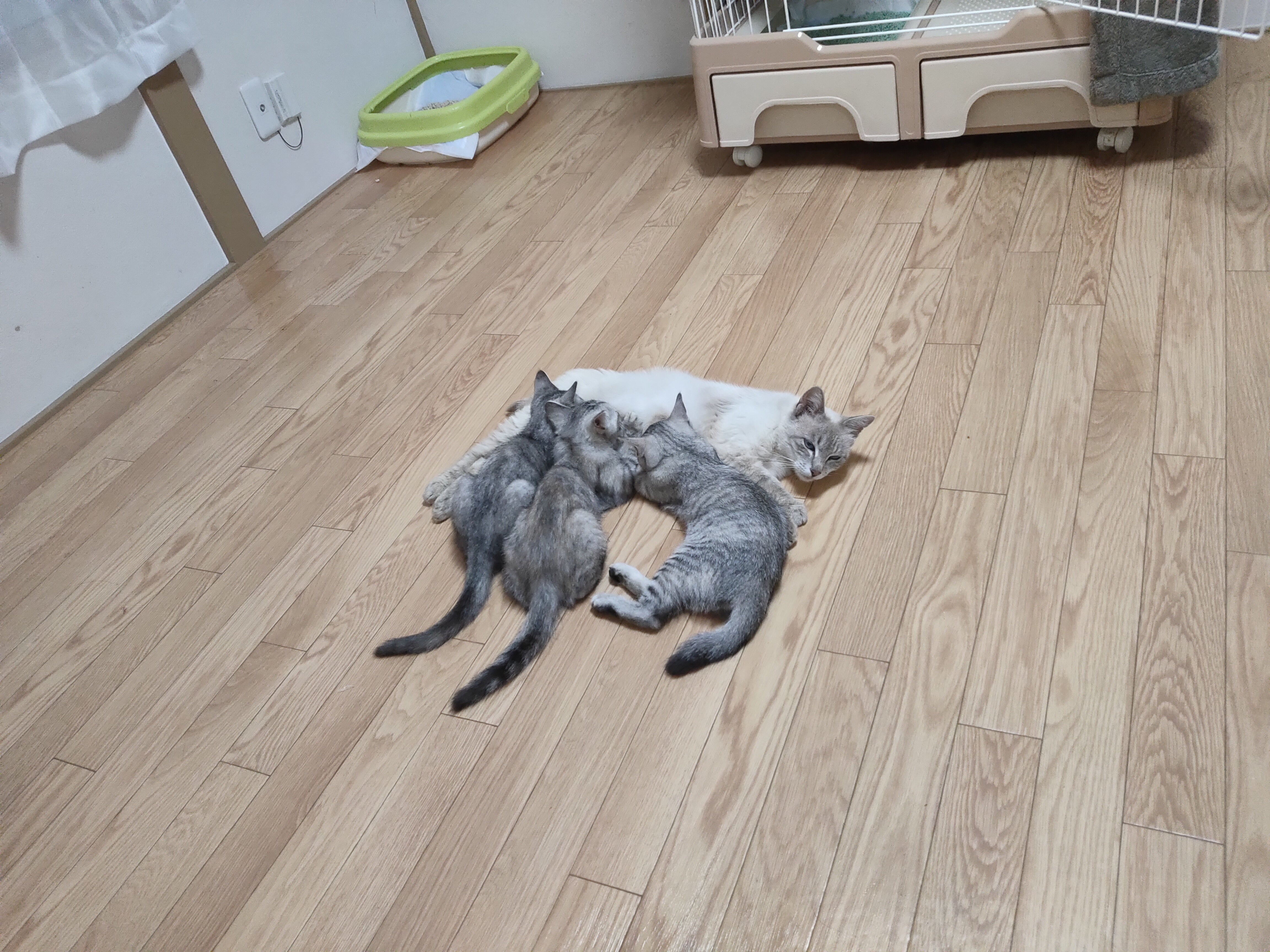 今年の7月にお家に迎え入れた、3匹の子猫の母猫。シロ