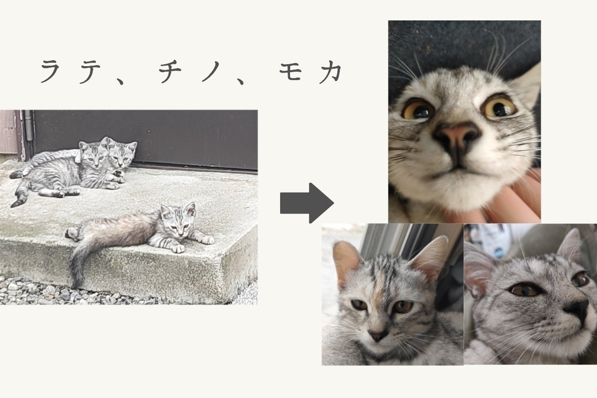 ラテ、モカ、チノが同じ年頃だったので、その子をうちで迎え入れればみんなとスクスクと健康的に育ち一番幸せになれるのではないかと思い、連絡先を交換させていただくことになりました。