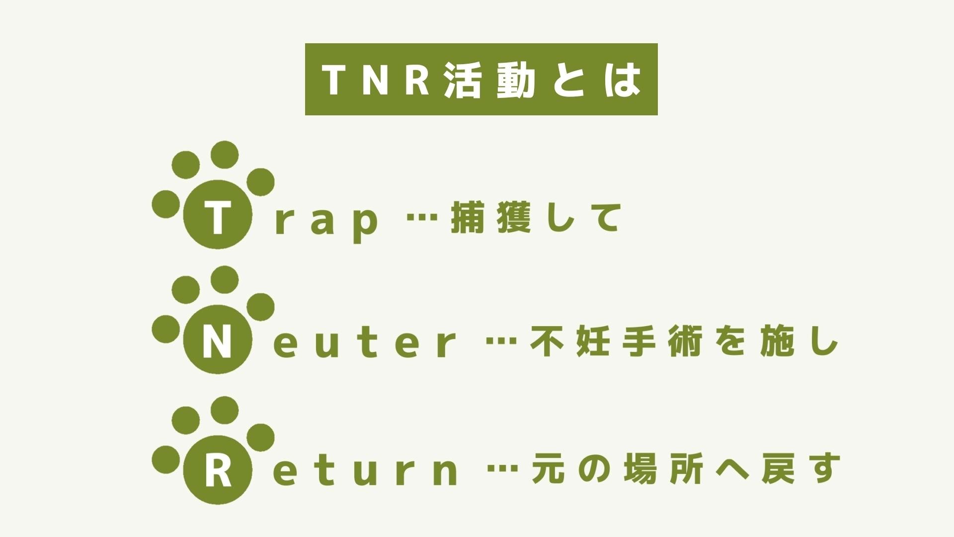 捕獲して、不妊手術を施し、元の場所に戻す。