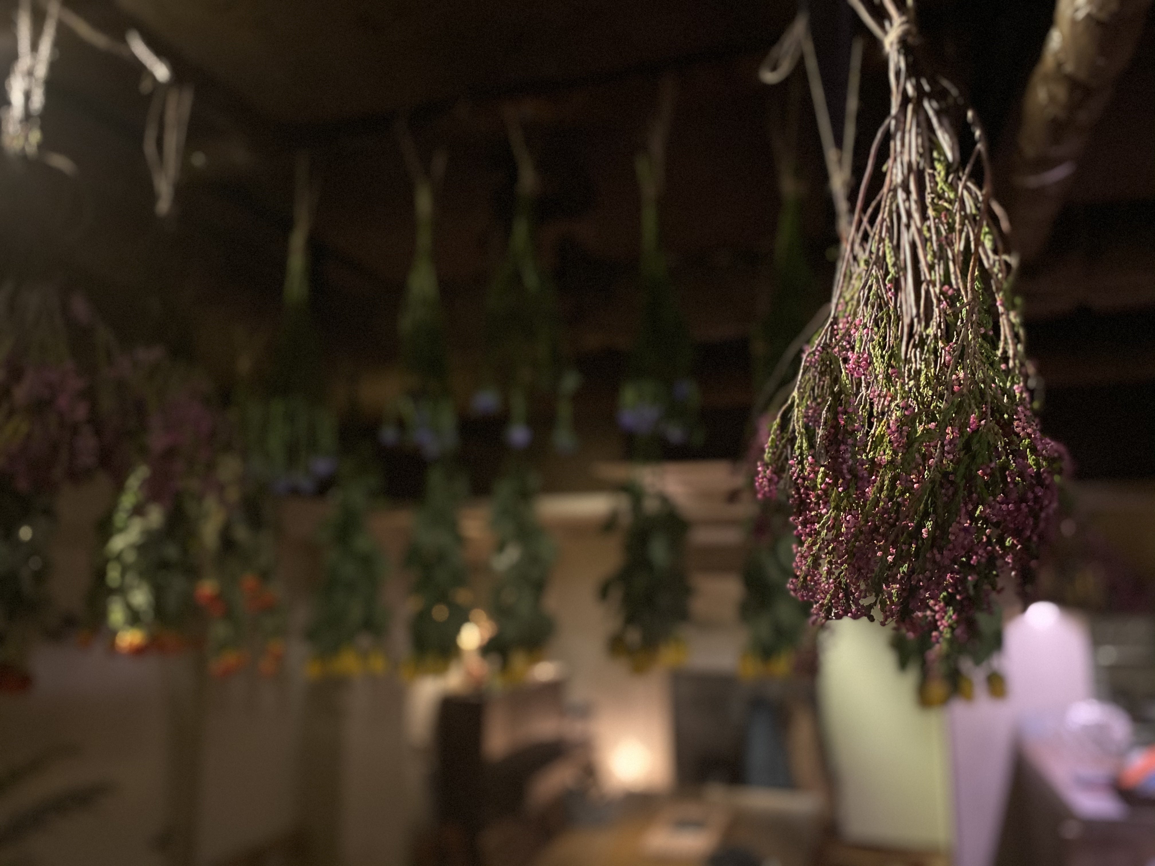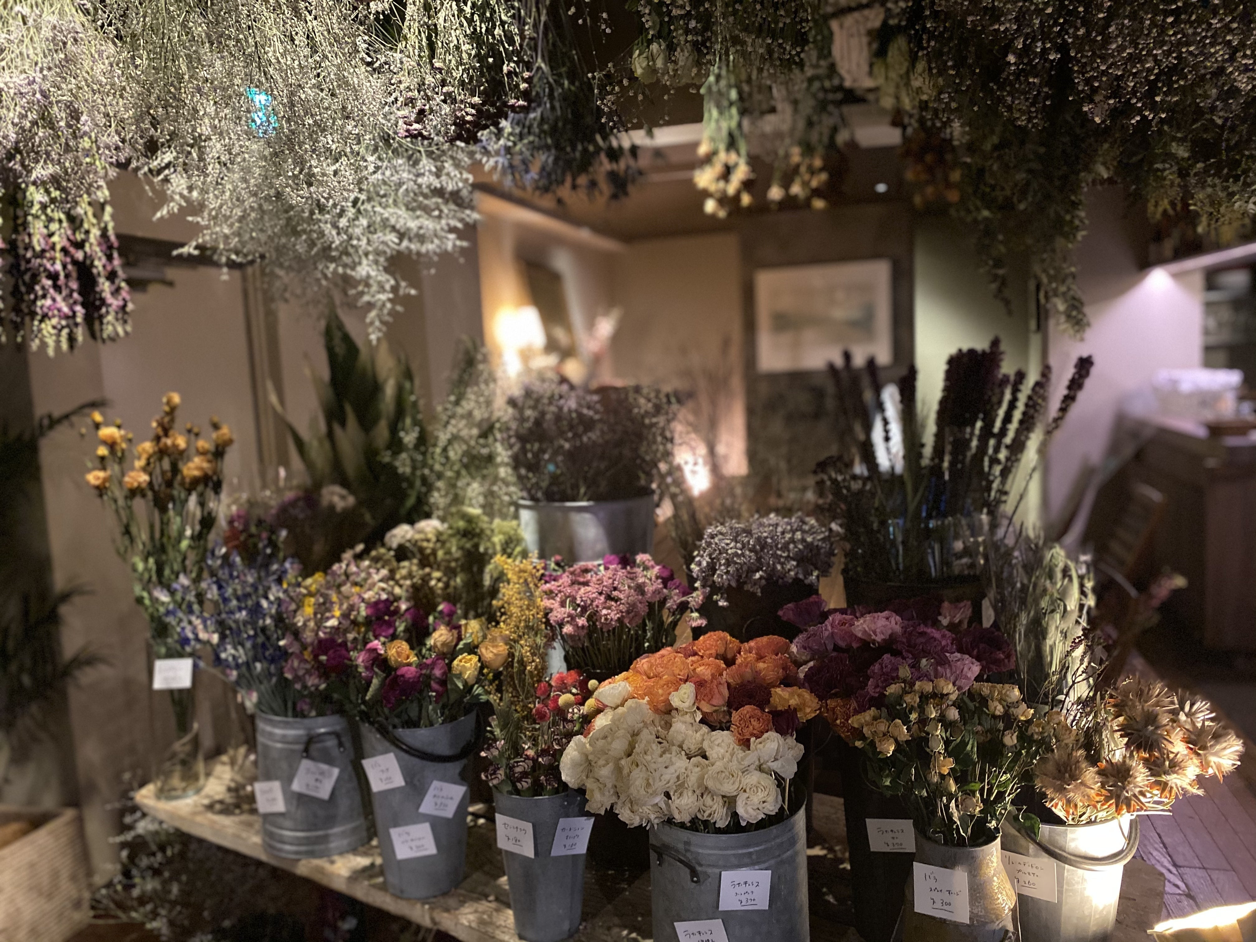 地下のお店なので日が当たらず、ドライフラワーを作るのにとても良い環境だったため