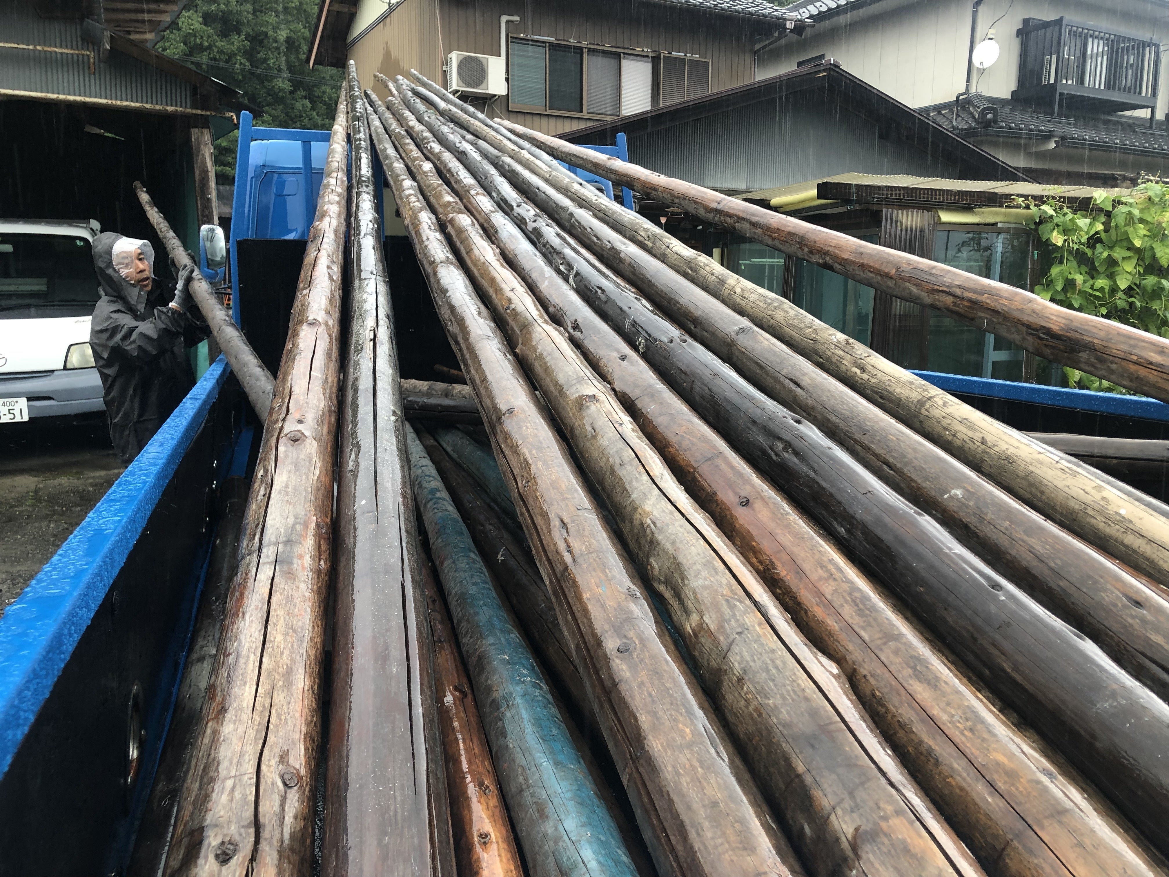 【大雨の中、丸木をもらいにいってびしょびしょになりながら運んだのも今ではいい思い出です】