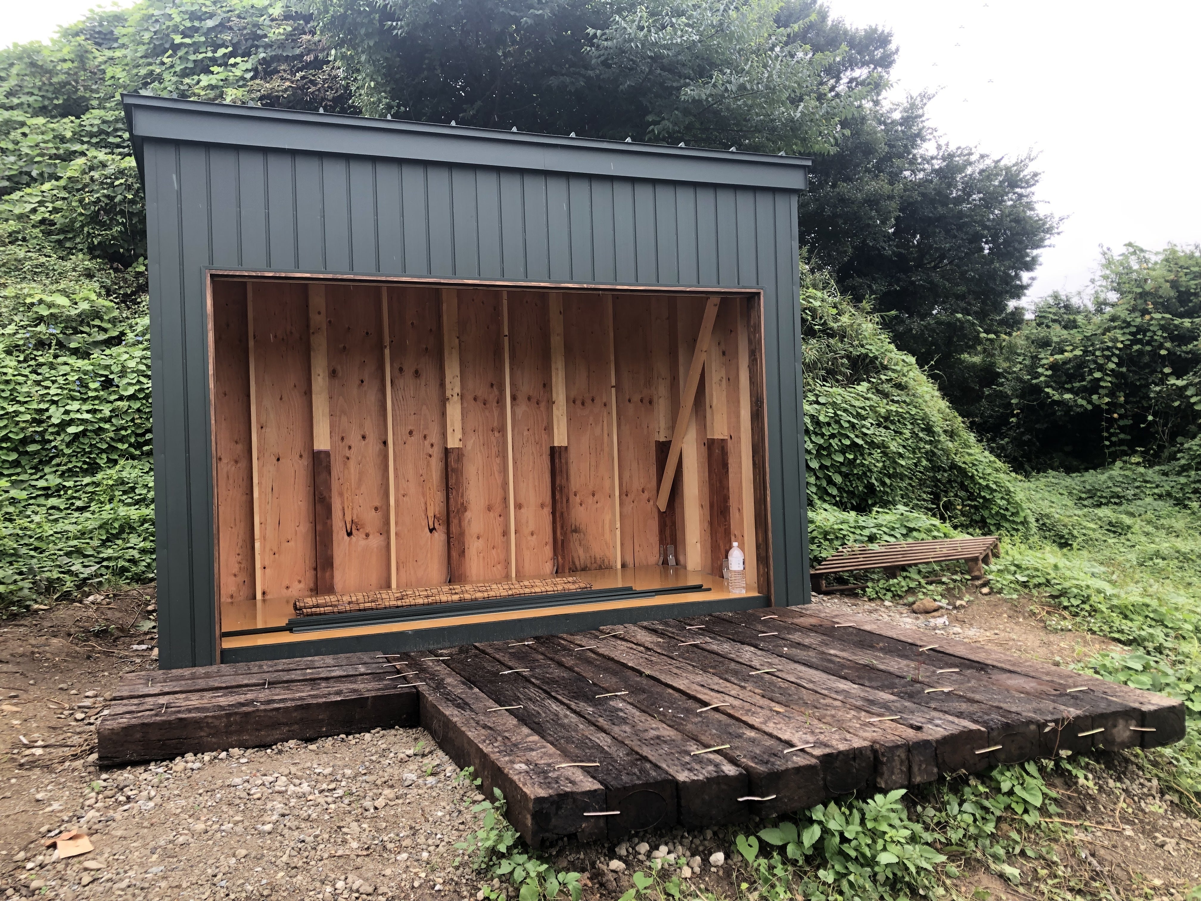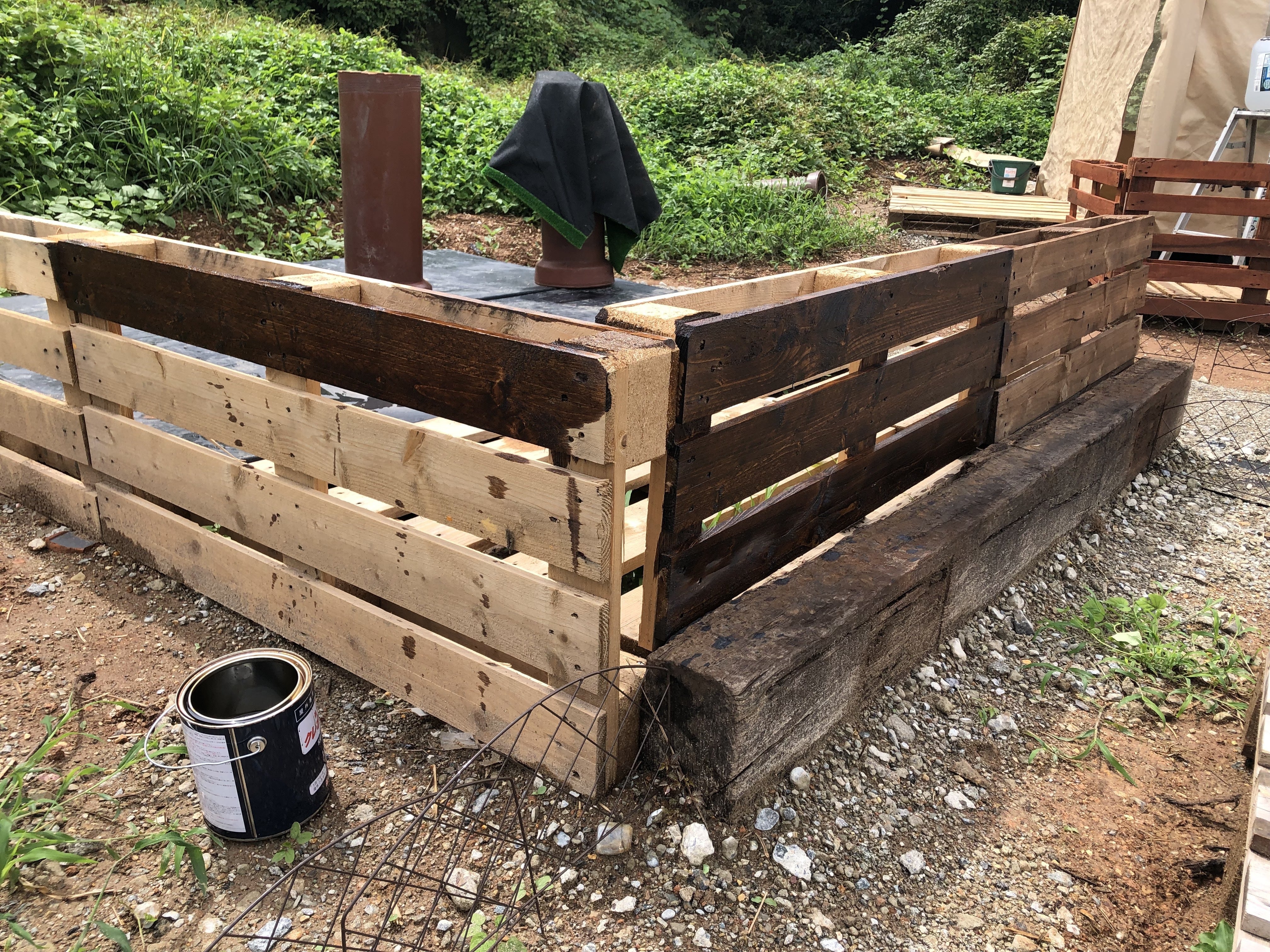 【パレットや材木を運び入れBBQ場としての少しずつイメージができてきました】