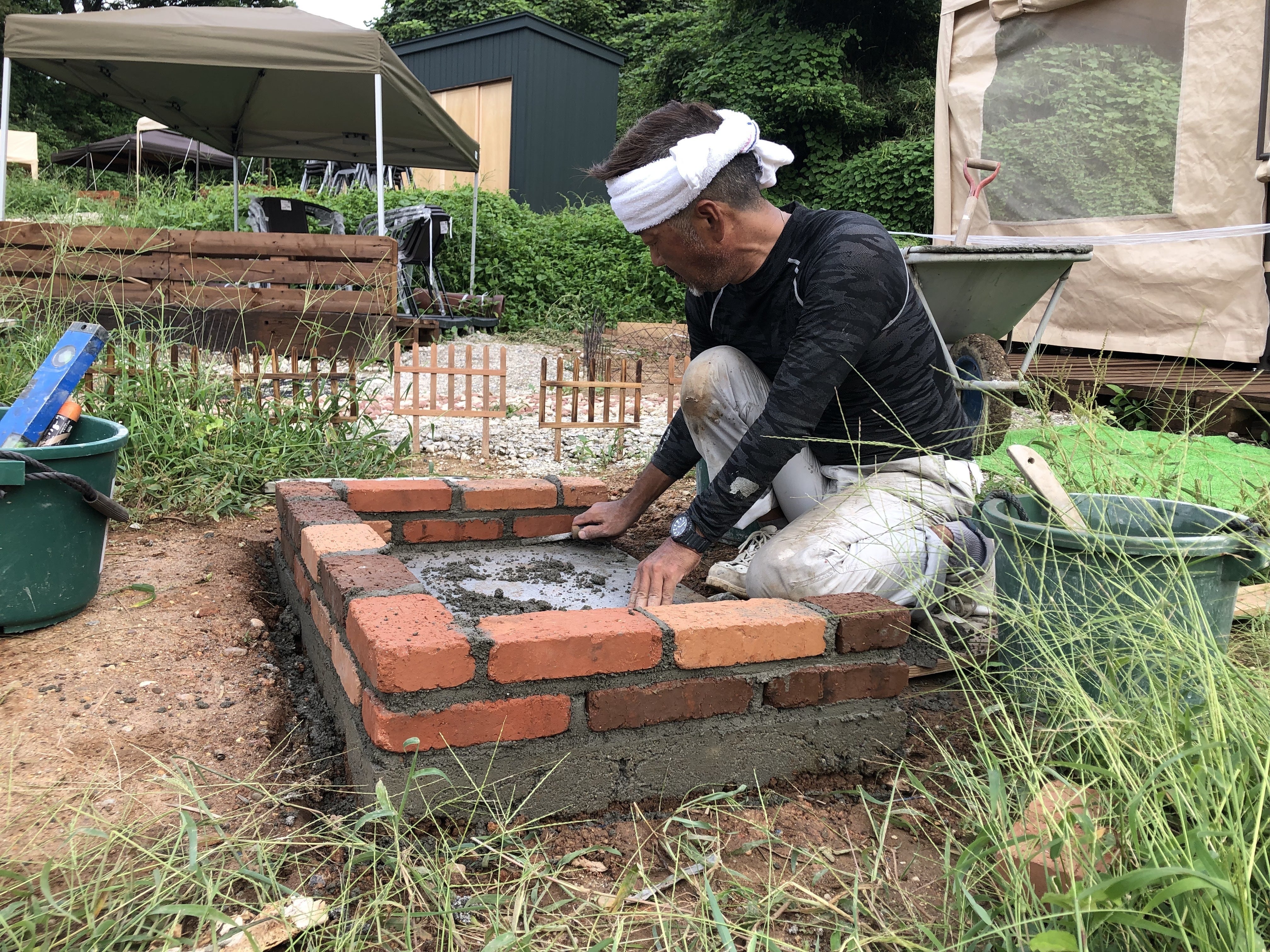 【左官屋さんのお力添えでレンガでコンロを作成しました】