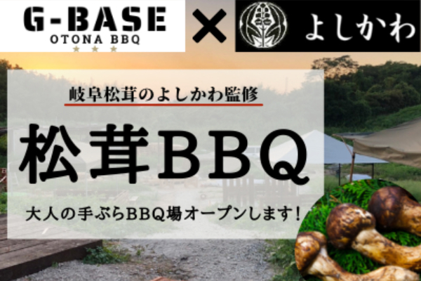 G-BASEは天皇陛下に松茸料理を献上したことでも有名な岐阜松茸よしかわ監修にて、松茸BBQセットなどを提供いたします。