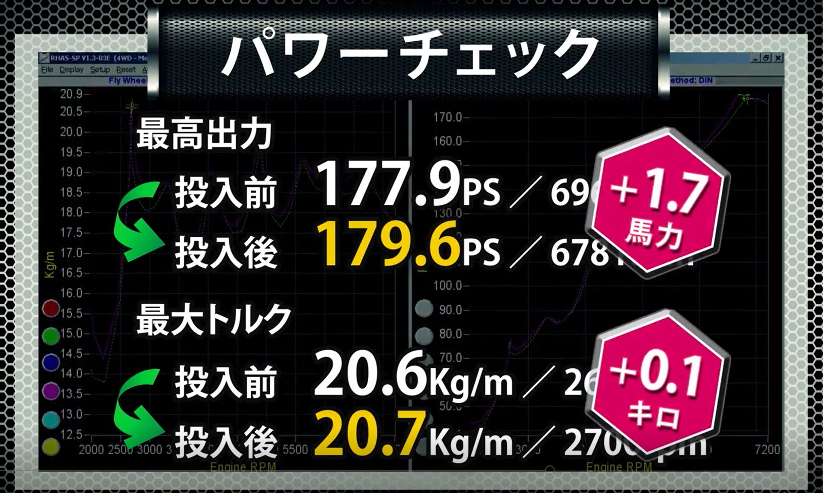 また、日本でのテストでも、出力・トルクともに数値が上がり、メカニカル音の改善も確認されました。