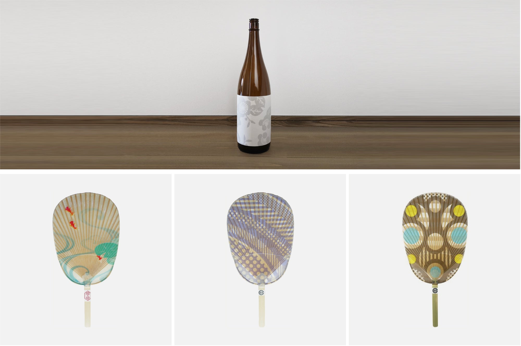 酒ビンでラベル風に見る「懐紙」や、岐阜の伝統工芸「水うちわ」
