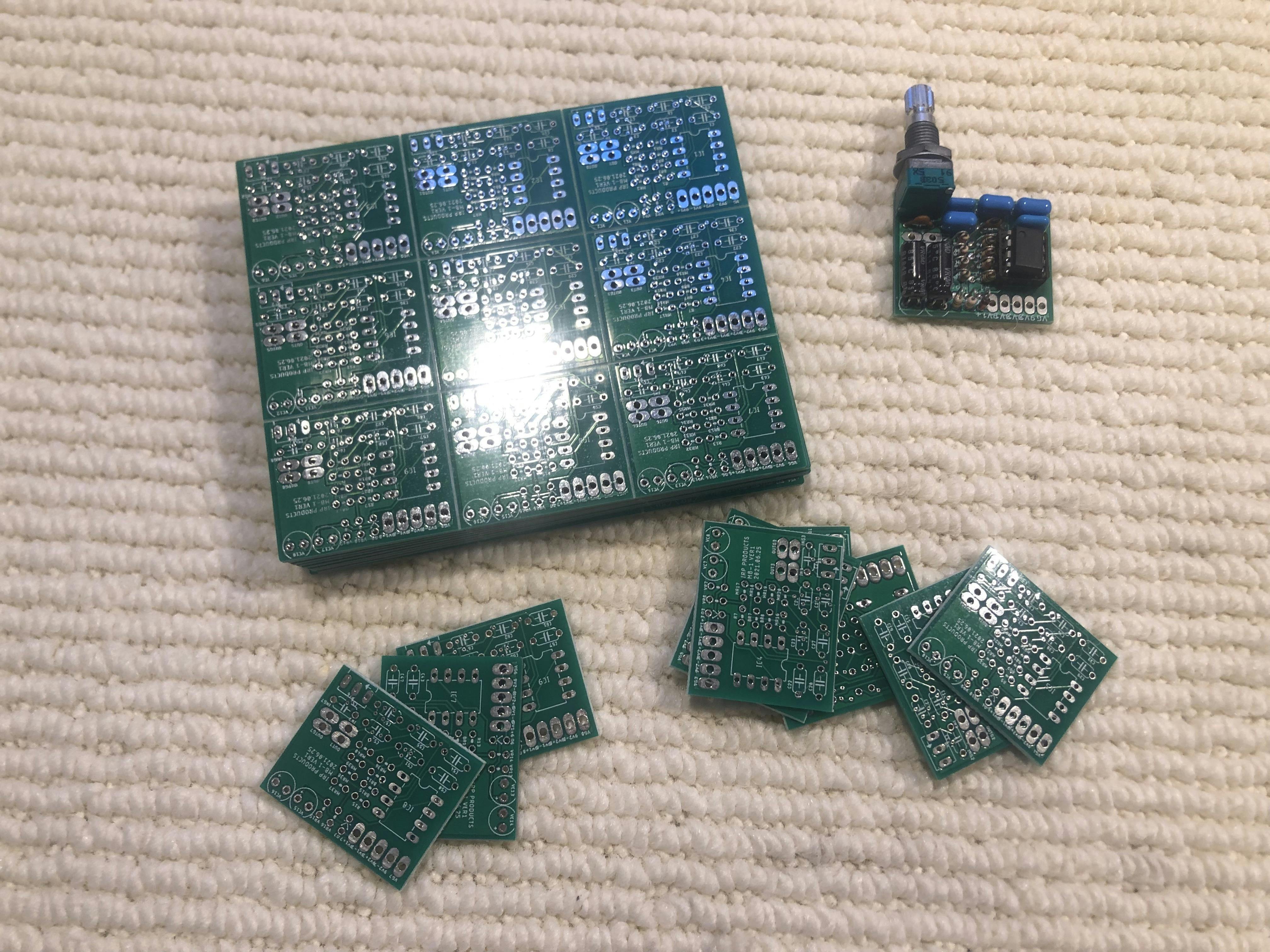 2021/11/11 04:11本日は電材屋さんからの部品が到着した為、いよいよ基板の生産に着手いたしました! 最近は半導体を含む電材の世界的な流通不安から、電気部品の値上がりや、欠品などが目立つようになってきました。とはいえ、今回使用する部品はまだまだ流通在庫が豊富な物のみを取り扱いますので、それほど調達が困難というわけではありません。調達が困難(というか中々進まない)なのは以前の活動報告に書かせていただきましたゲインコントロールポットのみの感触ですが、もしかすると同梱するステレオジャックあたりも調達が怪しい所です。。 ポットとそのごく一部近くにある部品を除いて54台分の基盤を組み立ててみました。 因みに作業効率の関係から、1枚9台分の回路基板を分割する前に部品を実装しています。 これだけで約1日ぶっ通しで作業をしていまして、並べてみるとかなりの手ハンダ数です。 組み立てのごく一部ですが、動画にしてみました。 正直この作業はハンドメイドらしく無茶苦茶に時間が掛かり、精神的な消耗もかなりありました。まだ残りの台数の作業は現在随時作業中です。 さて、今回、音質に直結するフィルター用のコンデンサはメタライズドポリエステルコンデンサを採用する事にしました。(黄色い四角い部品の事) これはFaithful Link社のフィルムコンデンサで、無誘導構造、自己修復性、小型を特長とします。ケースに入れエポキシで充填してあるため、耐湿性があります。特性がよく、ひずみ(いわゆるギター的な意味ではなく電気的な意味)も少ないので、オーディオ回路に最適な部材の一つとされています。 そこから考えると楽器に封入するには最適な選択なのではないかと思い採用に至りました。トップ画像のサンプル品に使用したコンデンサは自分で所有していた所謂デッドストック品であった為、変更しましたが、音質的、組み立て作業的にも、この選択は正解だったと感じています。 所謂エレクトリックギター類の楽器向け電気回路は、音質という理屈では説明しきれない所がありますが、正解と不正解(勿論回路的には安全な設計をしています)の境界線、そのどこかに心地よい音質が存在するのではないかと個人的には考えています。 もっと見る