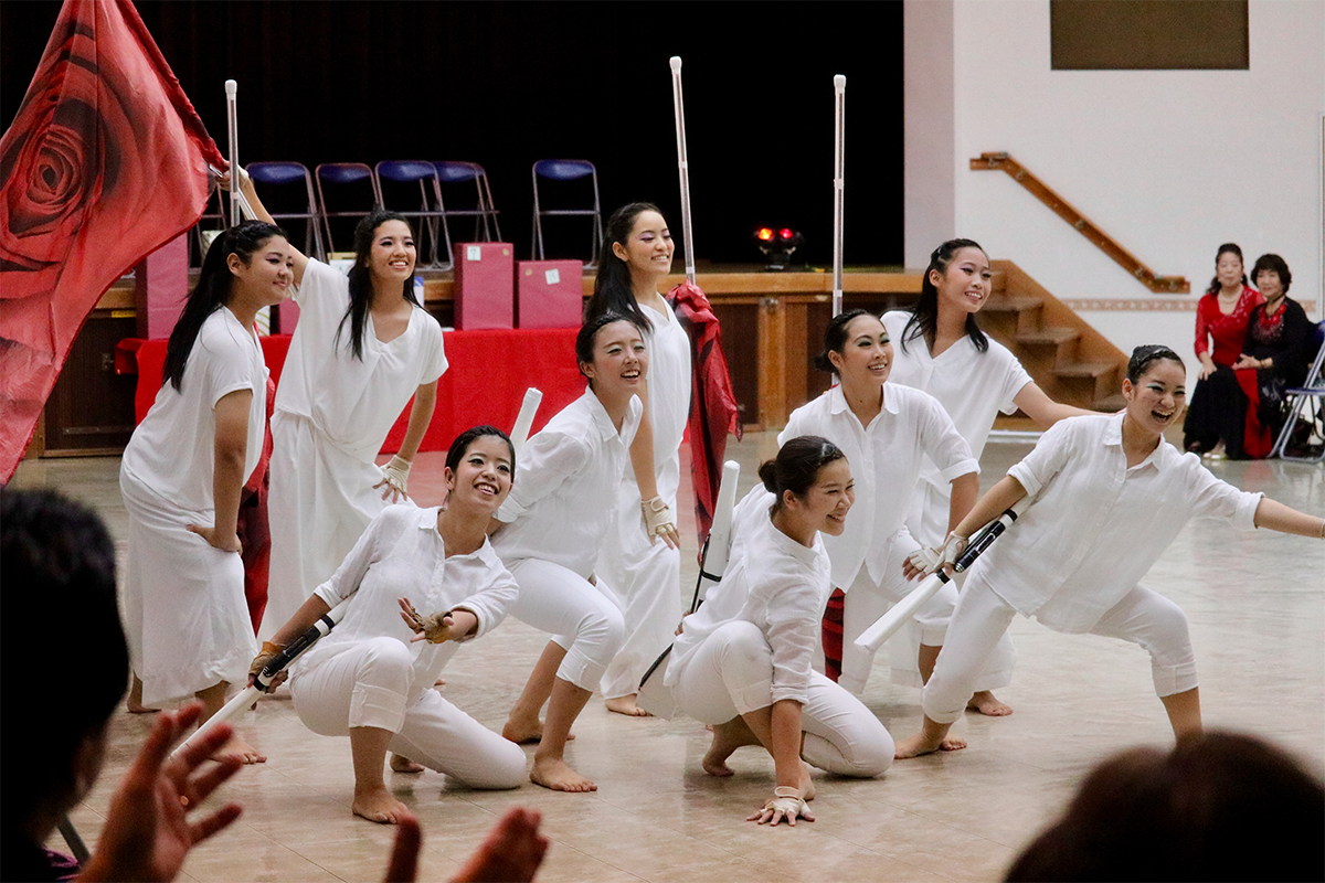 沖縄の高校生から社会人までがまったく異なる日常を送っているなかで、カラーガードに挑戦し互いに技を磨くことで成長し、マーチング/カラーガードを通じて日常でも輝ける人材になれればと考えています。