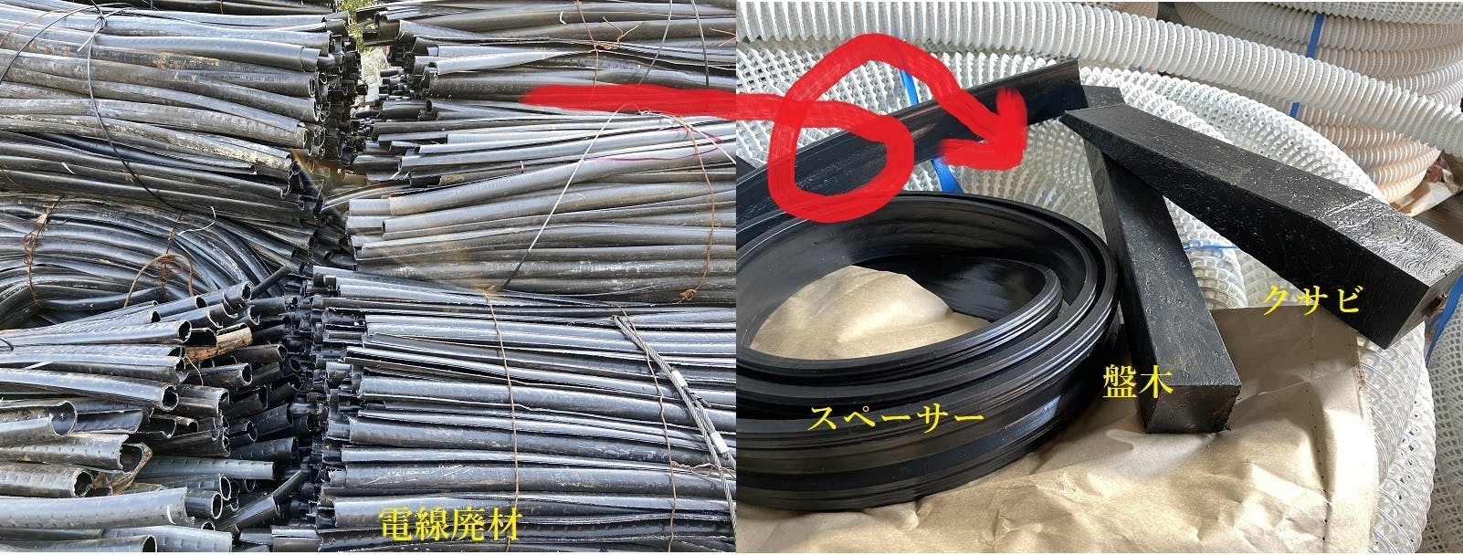 耐候性、割れない、欠けない、汎用樹脂より比重が大きい(PE、PPの1.5倍)この特性をリサイクル加工品、クサビ、盤木、コーンウエイト等。アイディア募集中。利益の配分応談。