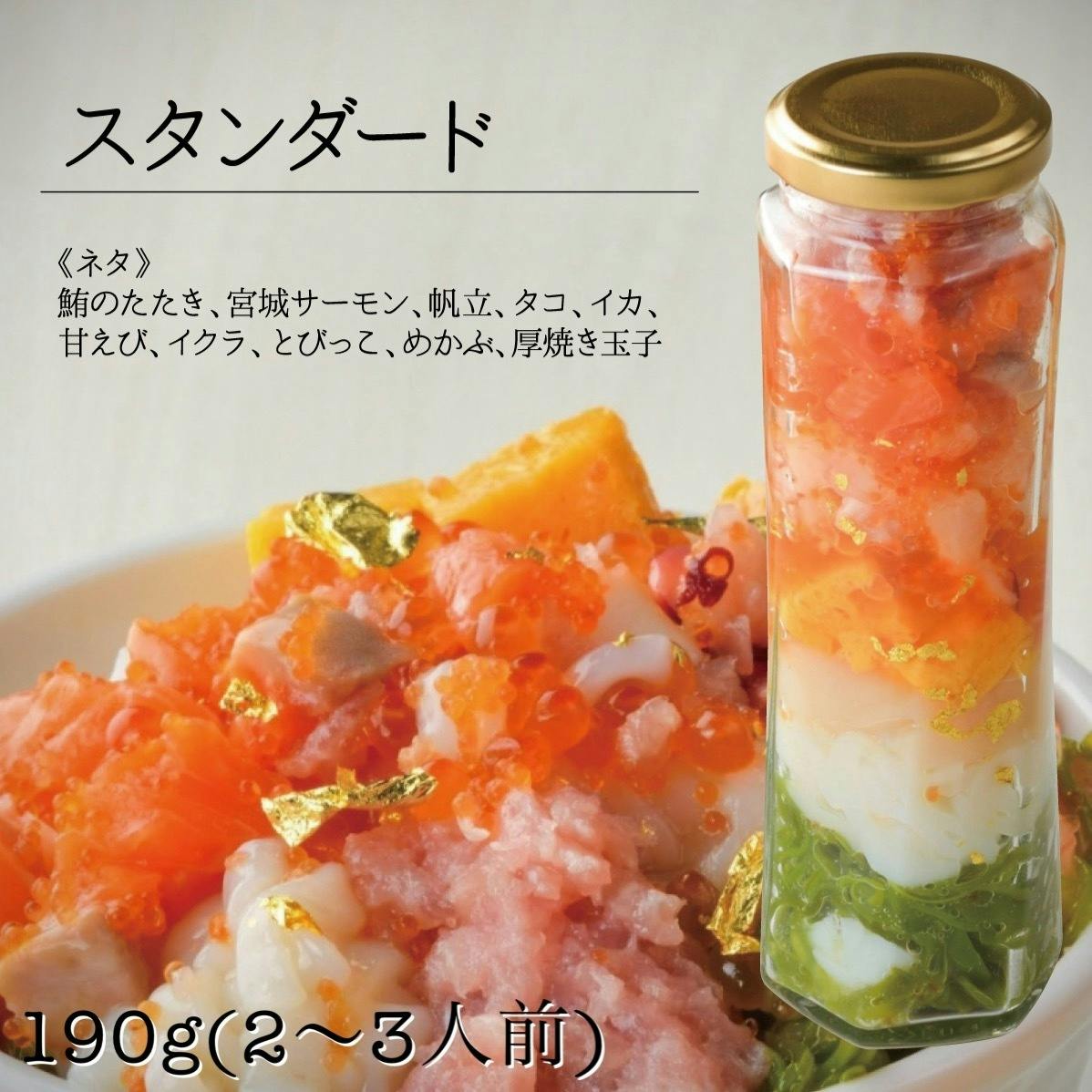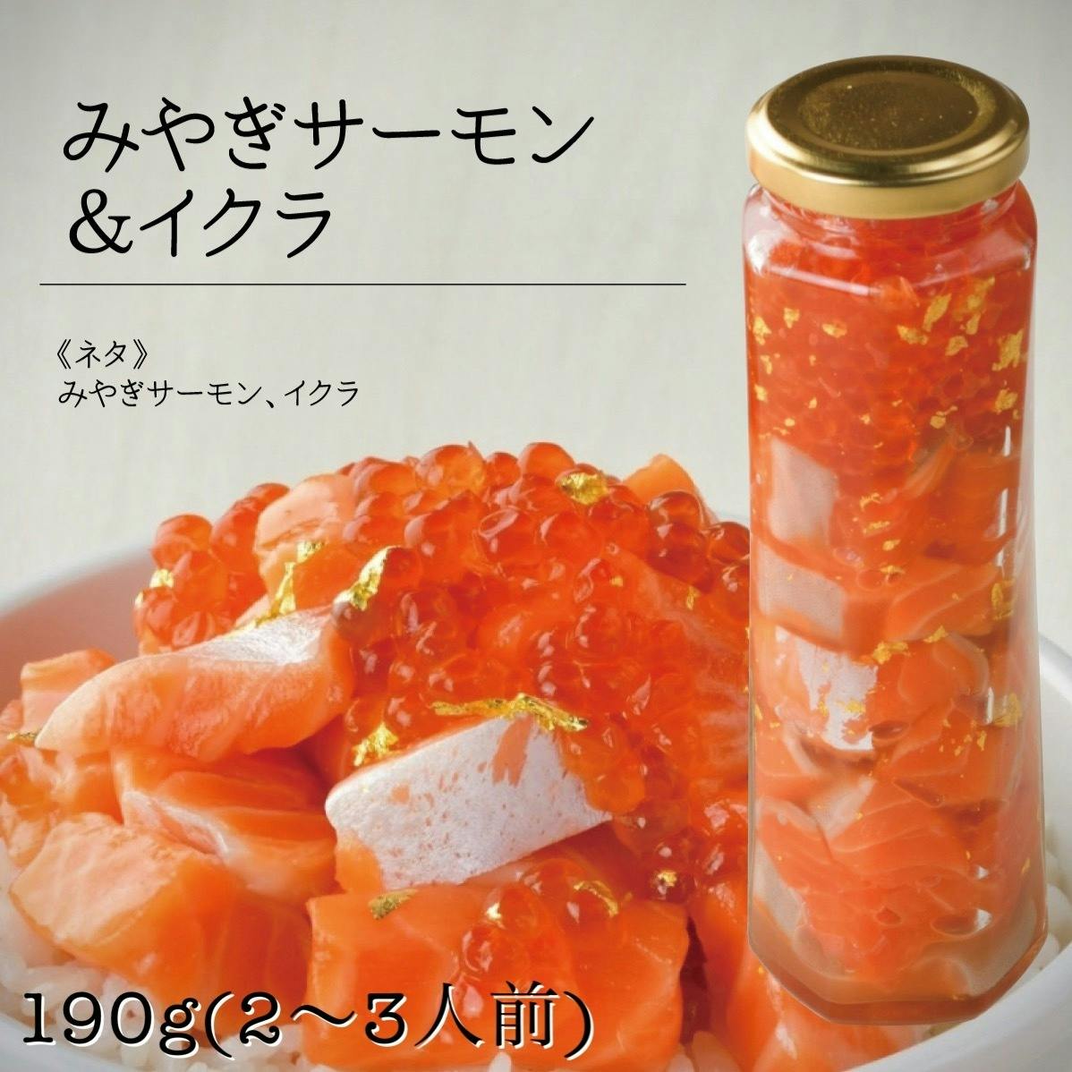[スタンダード 漬け丼 みやぎサーモン・いくら]の中からお好きな海鮮瓶をお二つ選んでいただけます。