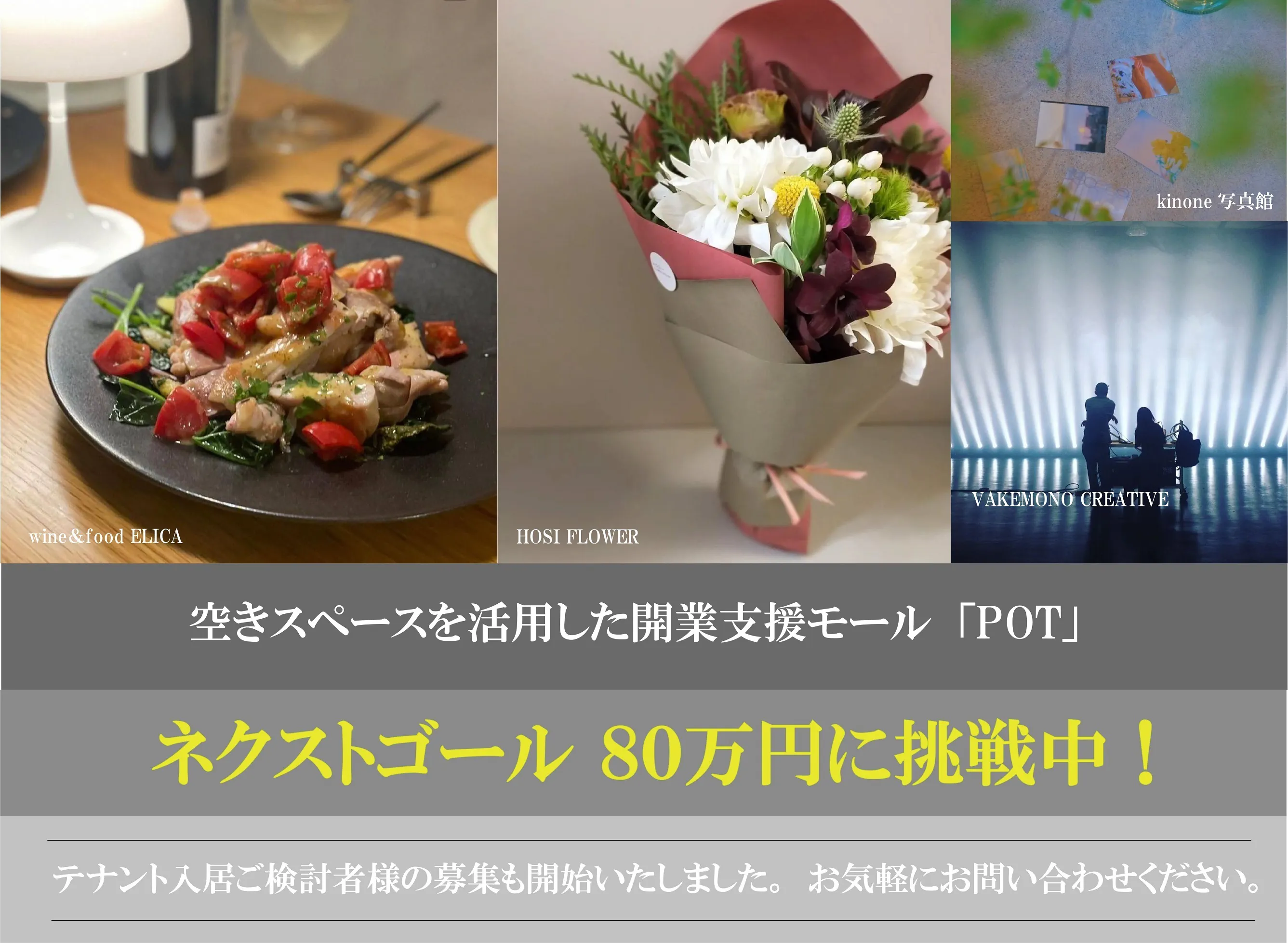 そういった背景から不動産サブリースによる創業支援プロジェクト第1弾として、300㎡の複合テナント物件「POT」が7月16日(土)にオープンし、同時に入居テナントも募集を開始します。