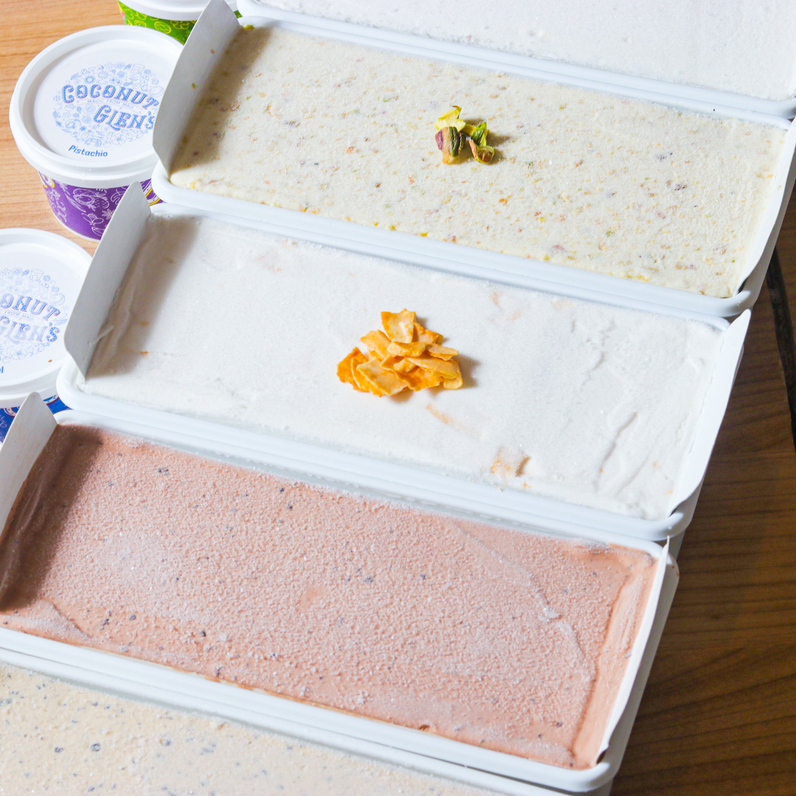 当店では乳製品を使用しない代わりに、厳選したオーガニックのココナッツミルクを惜しみなく使用し、ココナッツクリームを手作りすることで、乳製品入りのアイスクリームに勝るとも劣らない濃厚な味わいを生み出しているのです。
