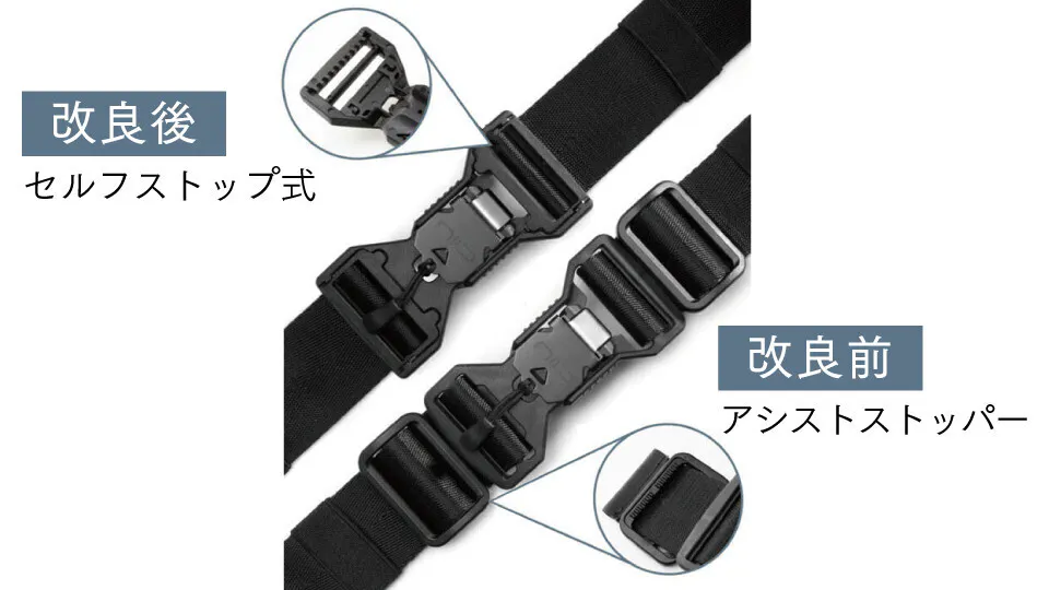 前作より、マグネットバックルを滑りにくいセルフストップ式にアップグレードし、より使いやすくなりました。