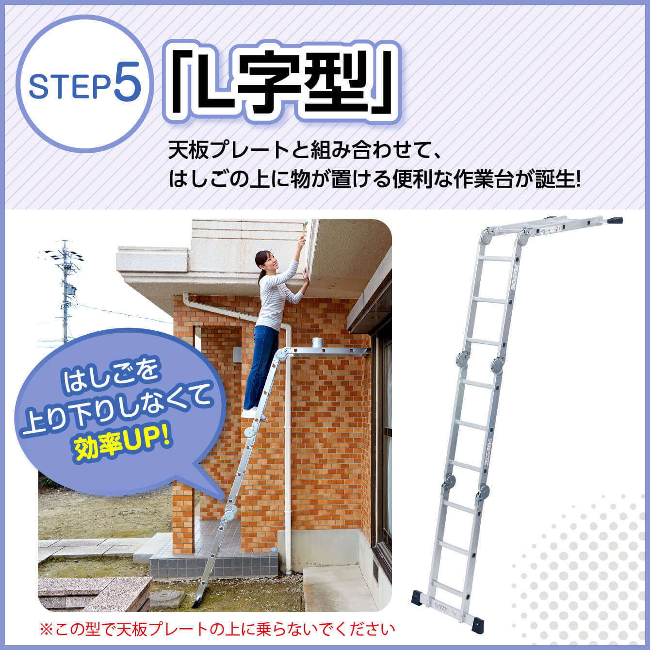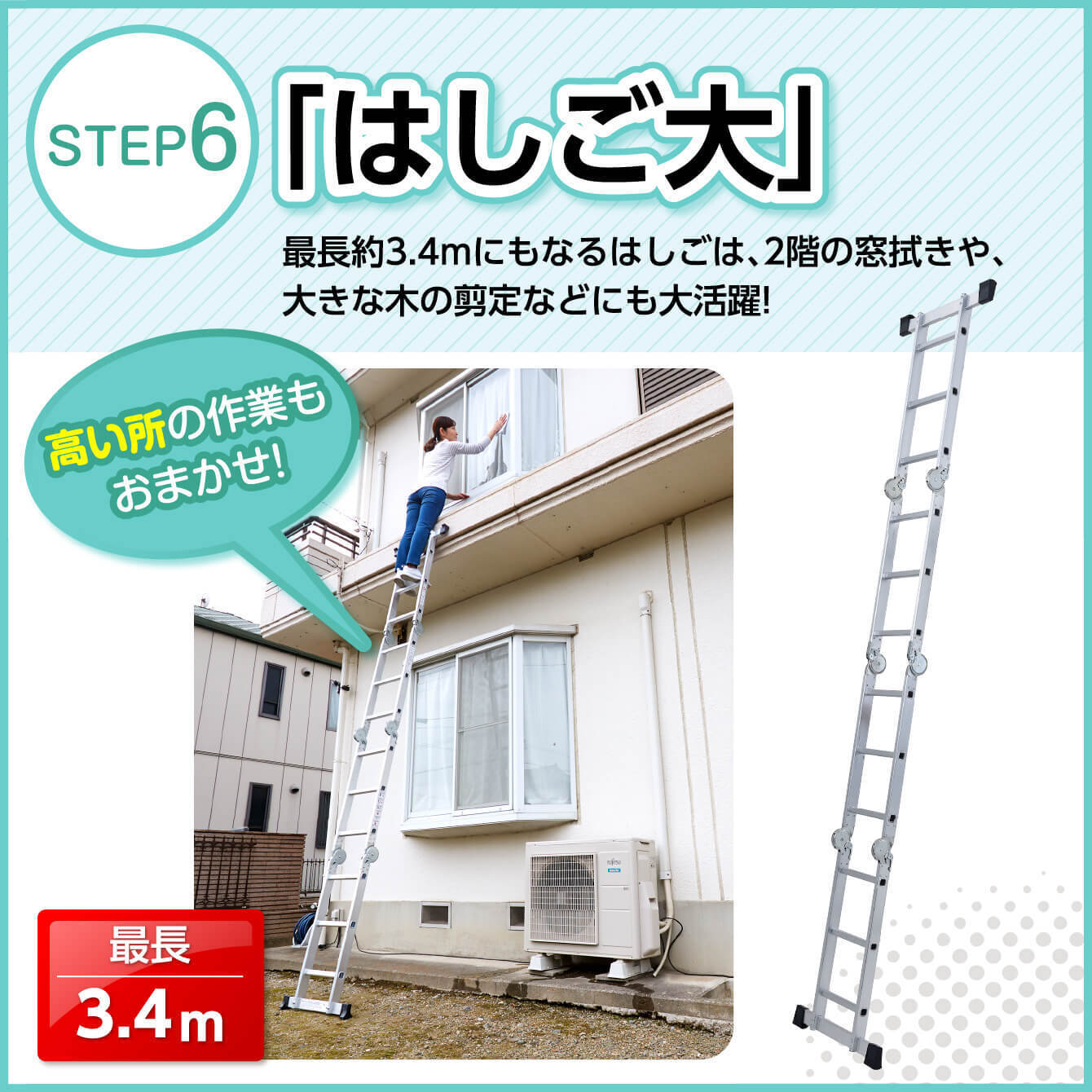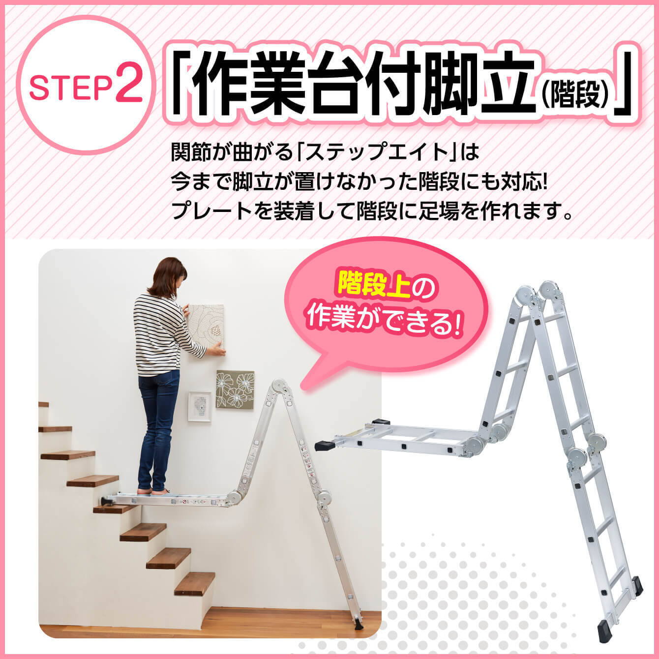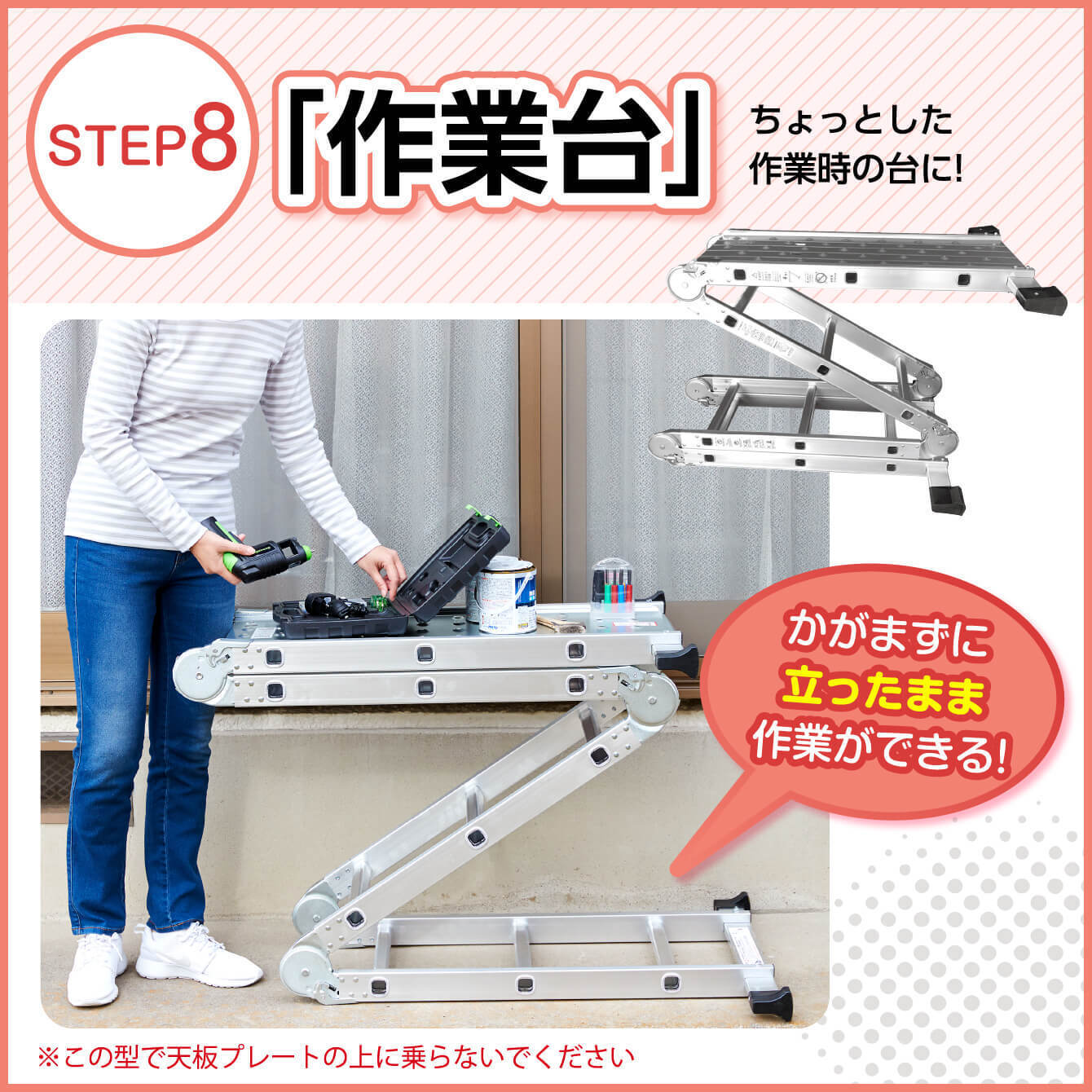 ステップ8は多関節型のハシゴで形を自由自在に変化できます。