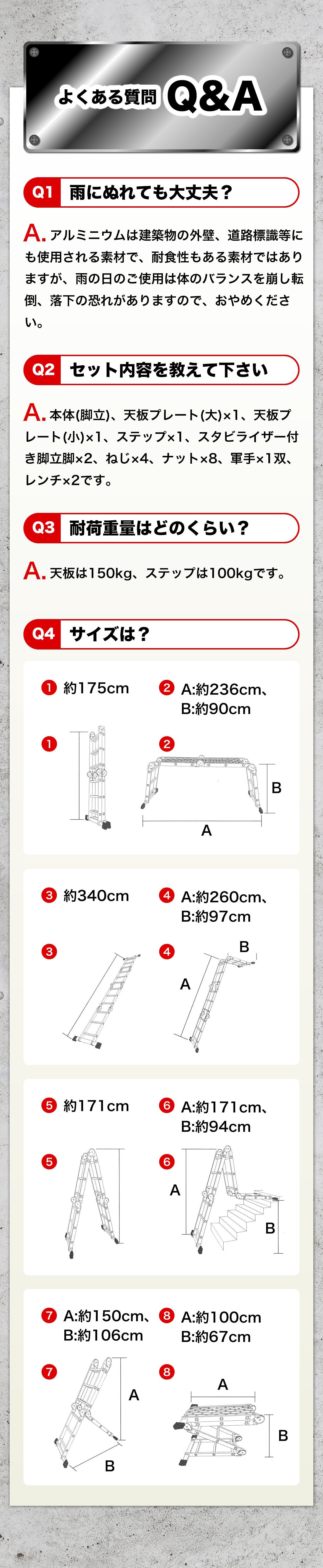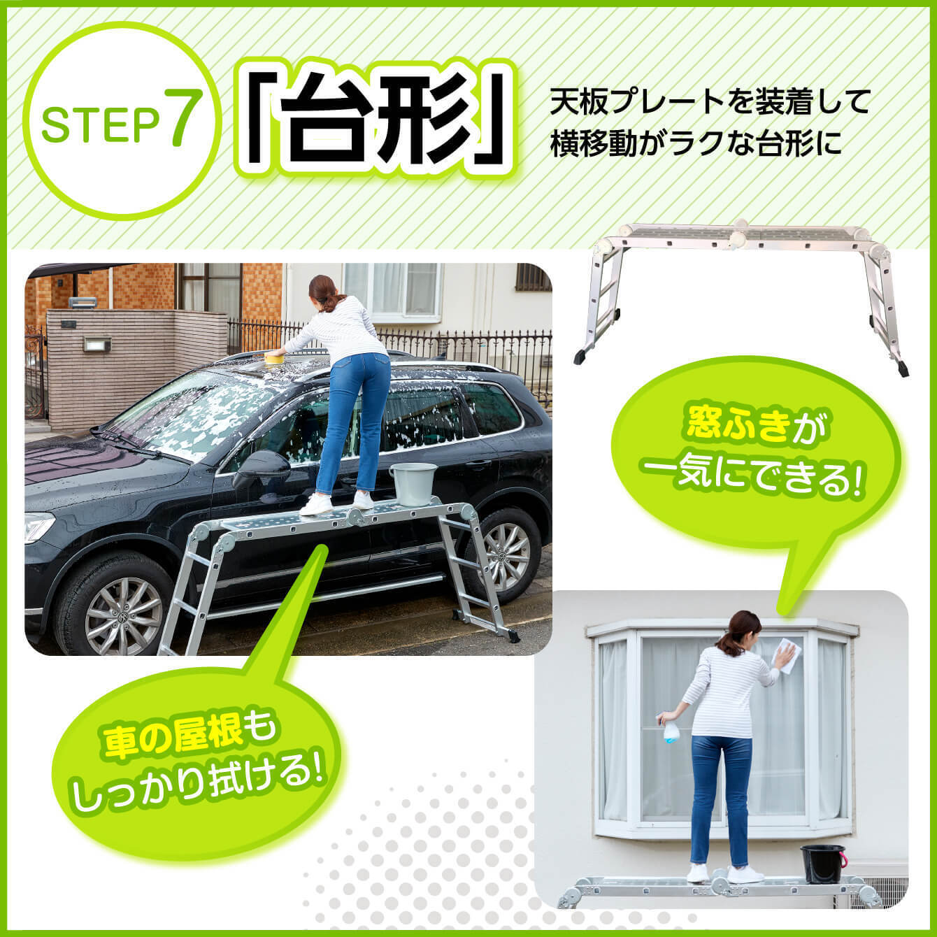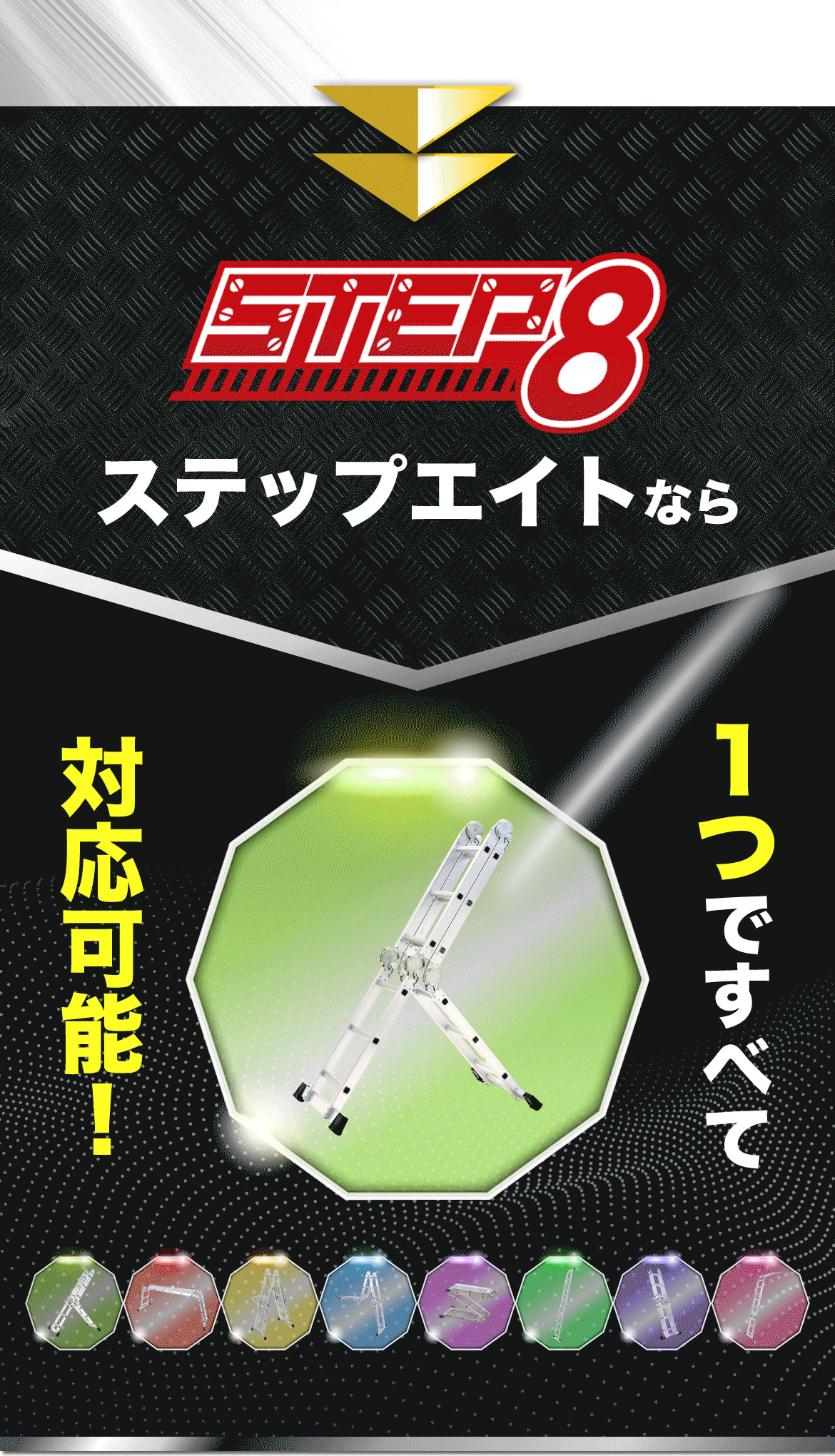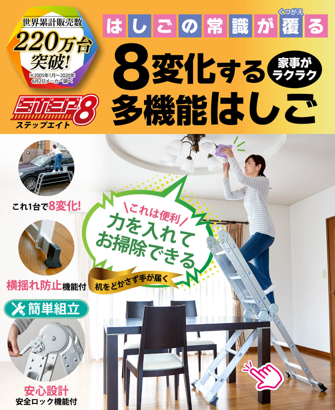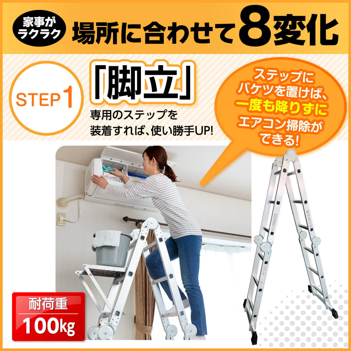 ステップ8は多関節型のハシゴで形を自由自在に変化できます。