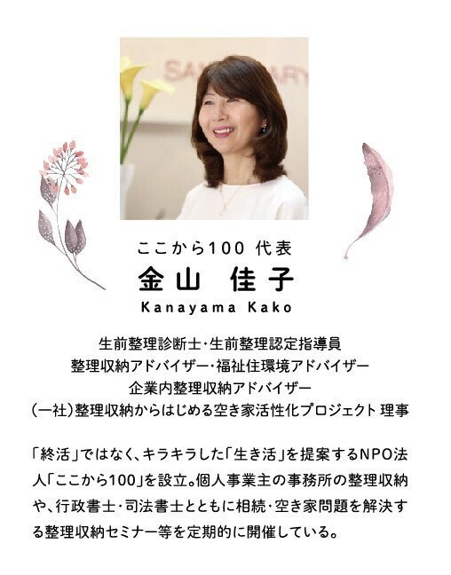 私は生前整理診断士として、アクティブシニアの皆さんが最後の1秒まで笑顔で生ききるためのお手伝いをしています。