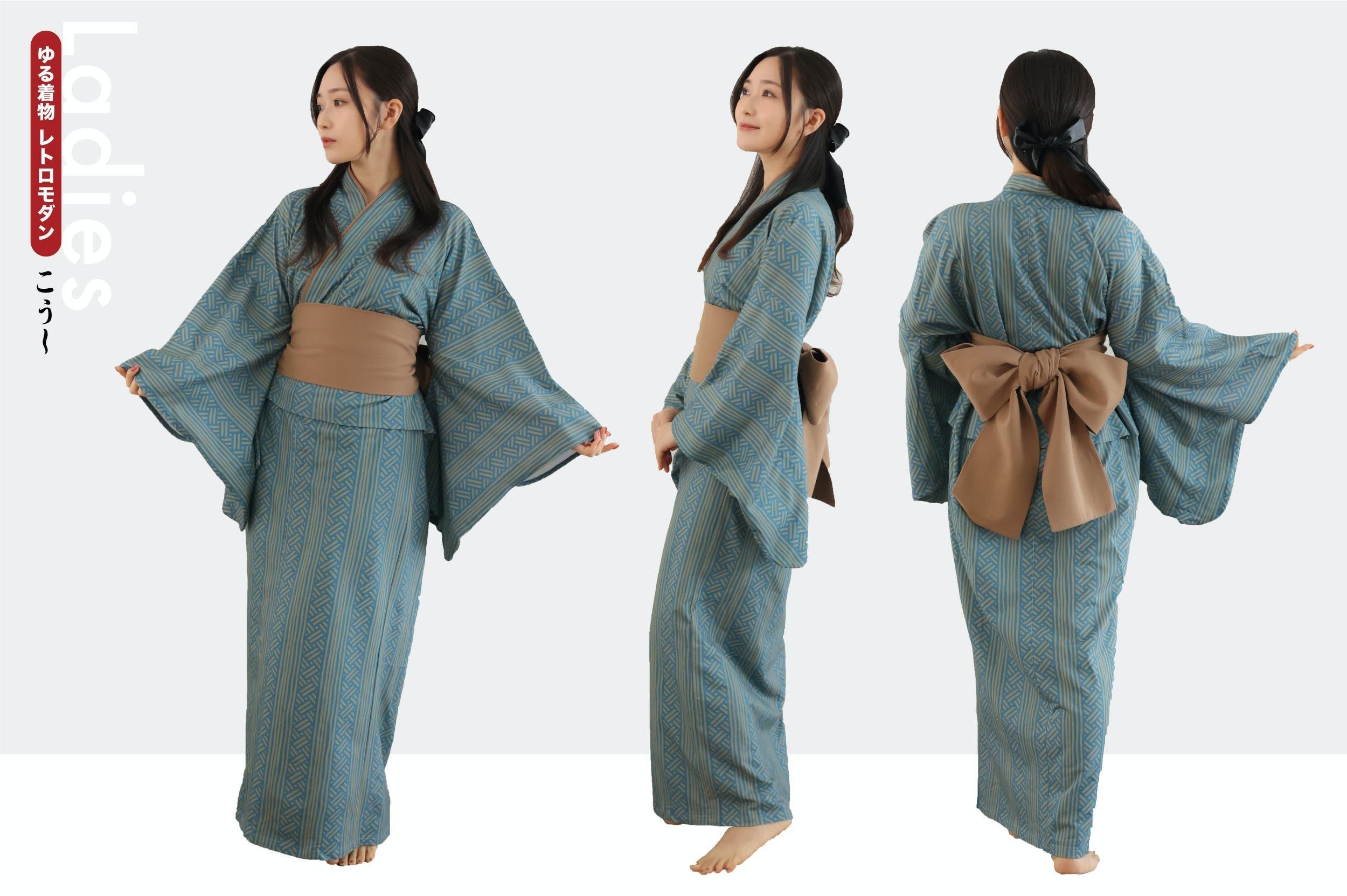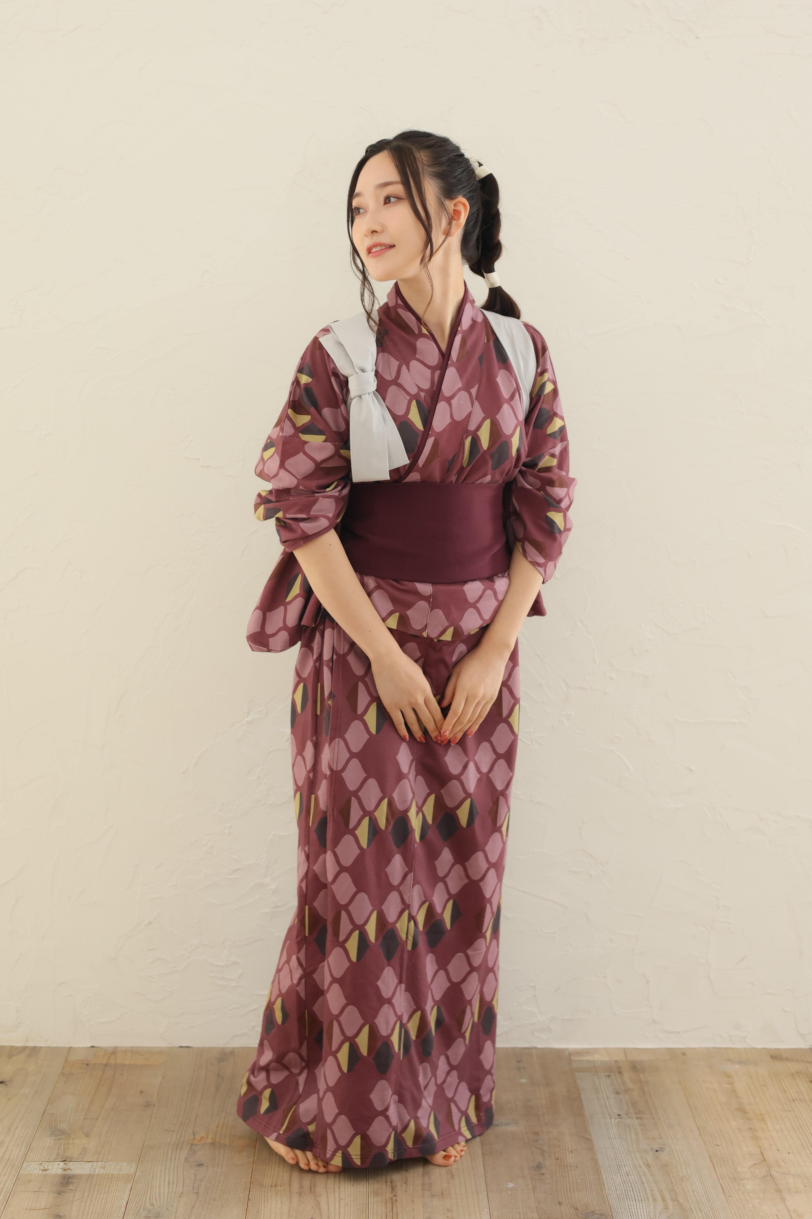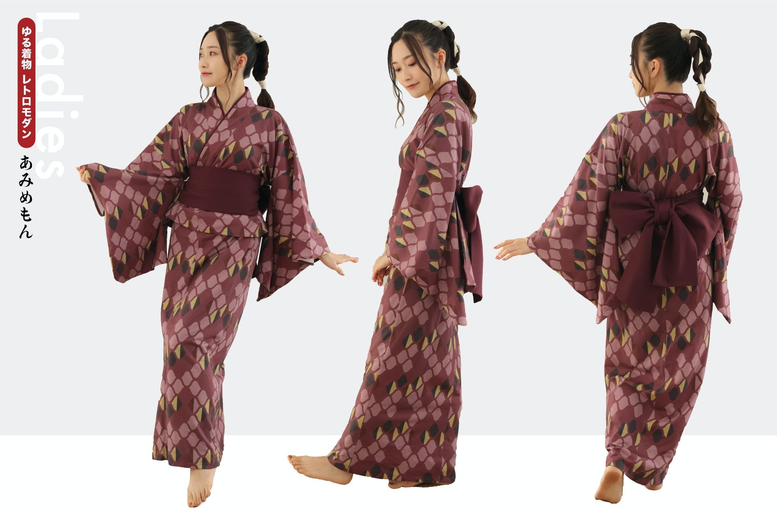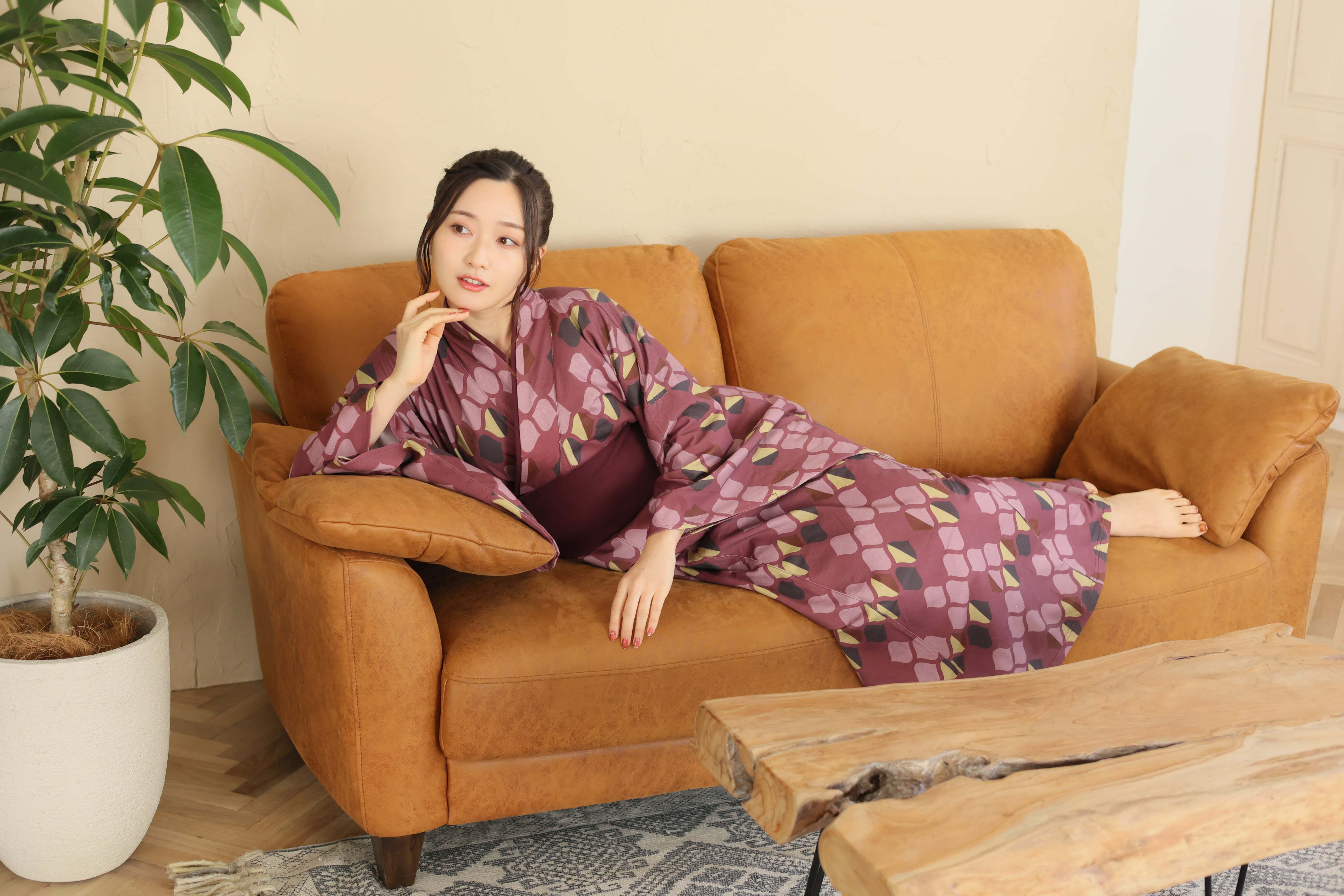 2021年3月にリリースした第一弾の「ゆる着物 令和版」では作り帯&マジックテープで留める仕様でしたが、より簡単に楽しんでいただきたいという想いから、今回は館内着のような仕様を採用いたしました!どなたでも迷いなくご着用いただけます。