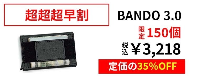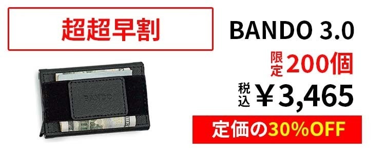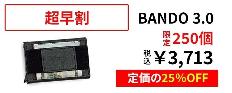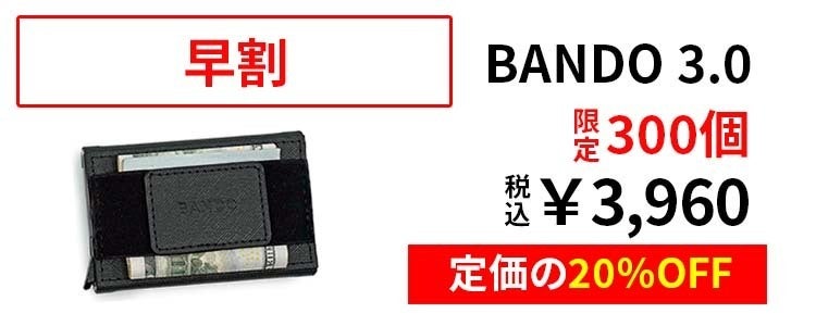 必要なモノだけを最小限に収納、スリムでかさばらない、シンプルで使いやすい『BANDO 3.0』は今の時代に最適な財布です。