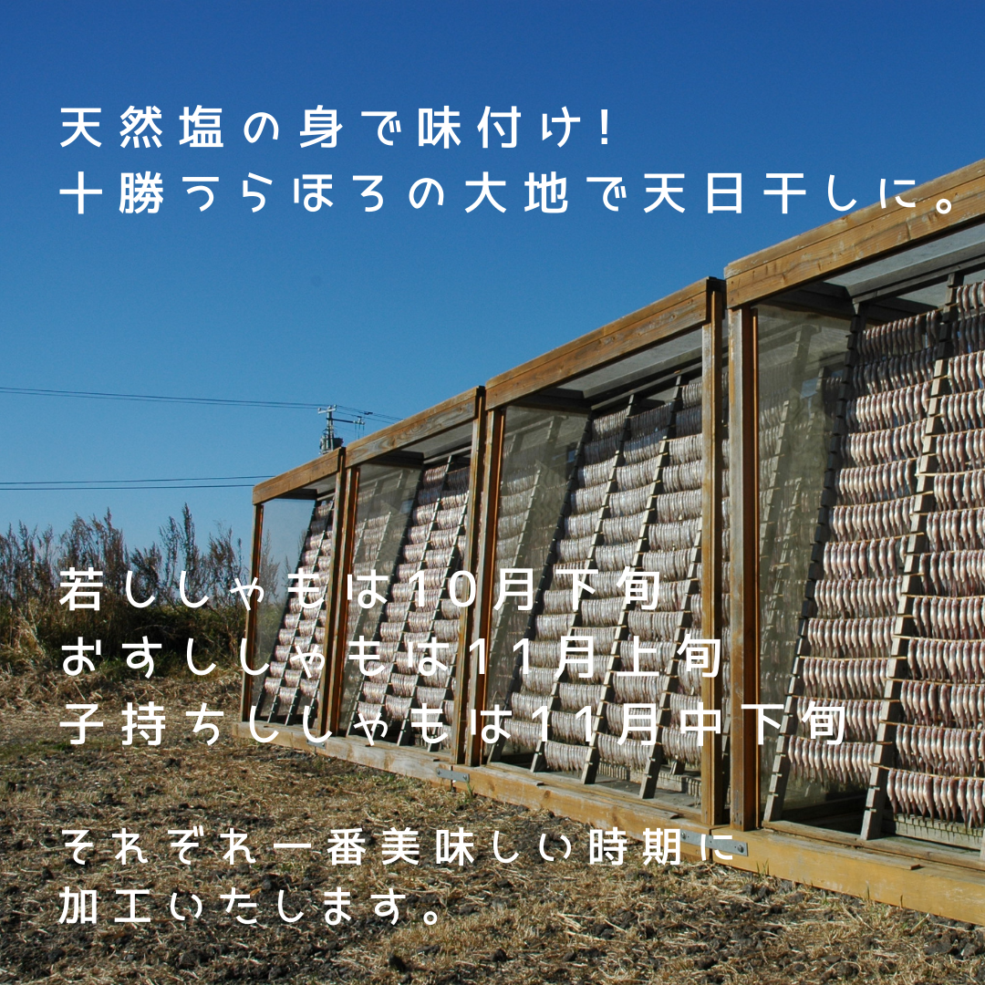浦幌町の秋の陽ざしをいっぱいに浴びて完成する旬の逸品です。干すししゃもにもこだわりが詰まっています。