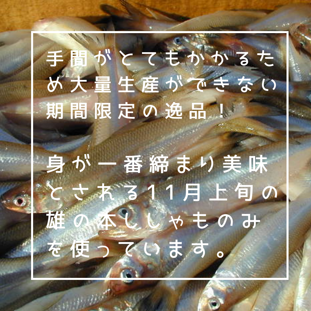 若ししゃもは10月下旬、オスししゃもは11月上旬、子持ちししゃもは11月中下旬の一番美味しい時期に加工します。