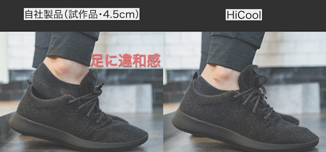 そこで、HiCoolは足に違和感がない限界基準と言われる、厚み2.5cmに挑戦。