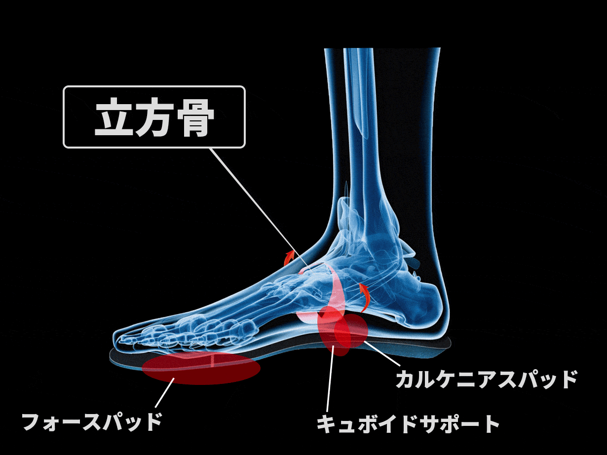 特許技術の、足の中の核となる「立方骨」を支える構造により、