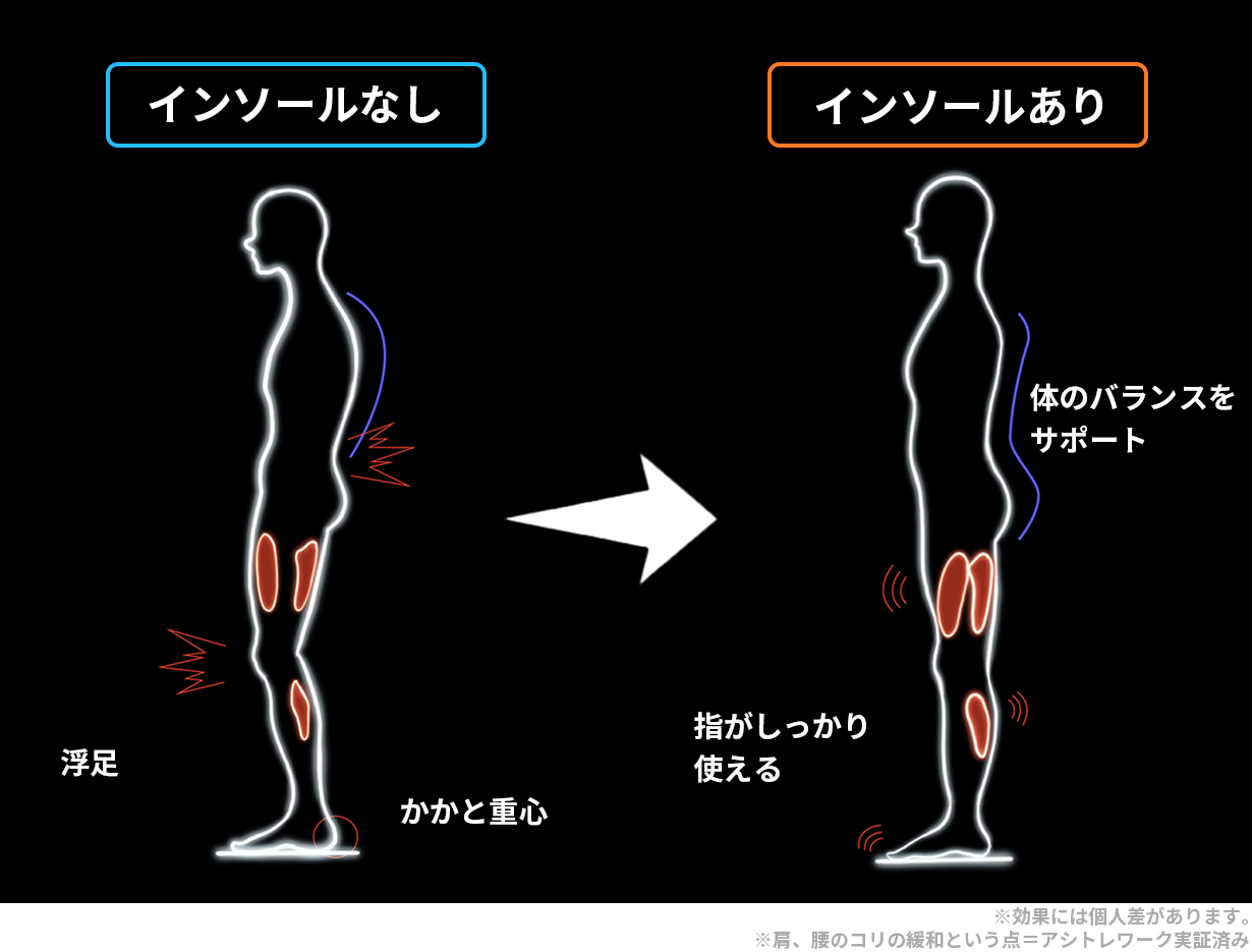 今までのシークレットインソールと違い、かかと位置に違和感が出ないんです。